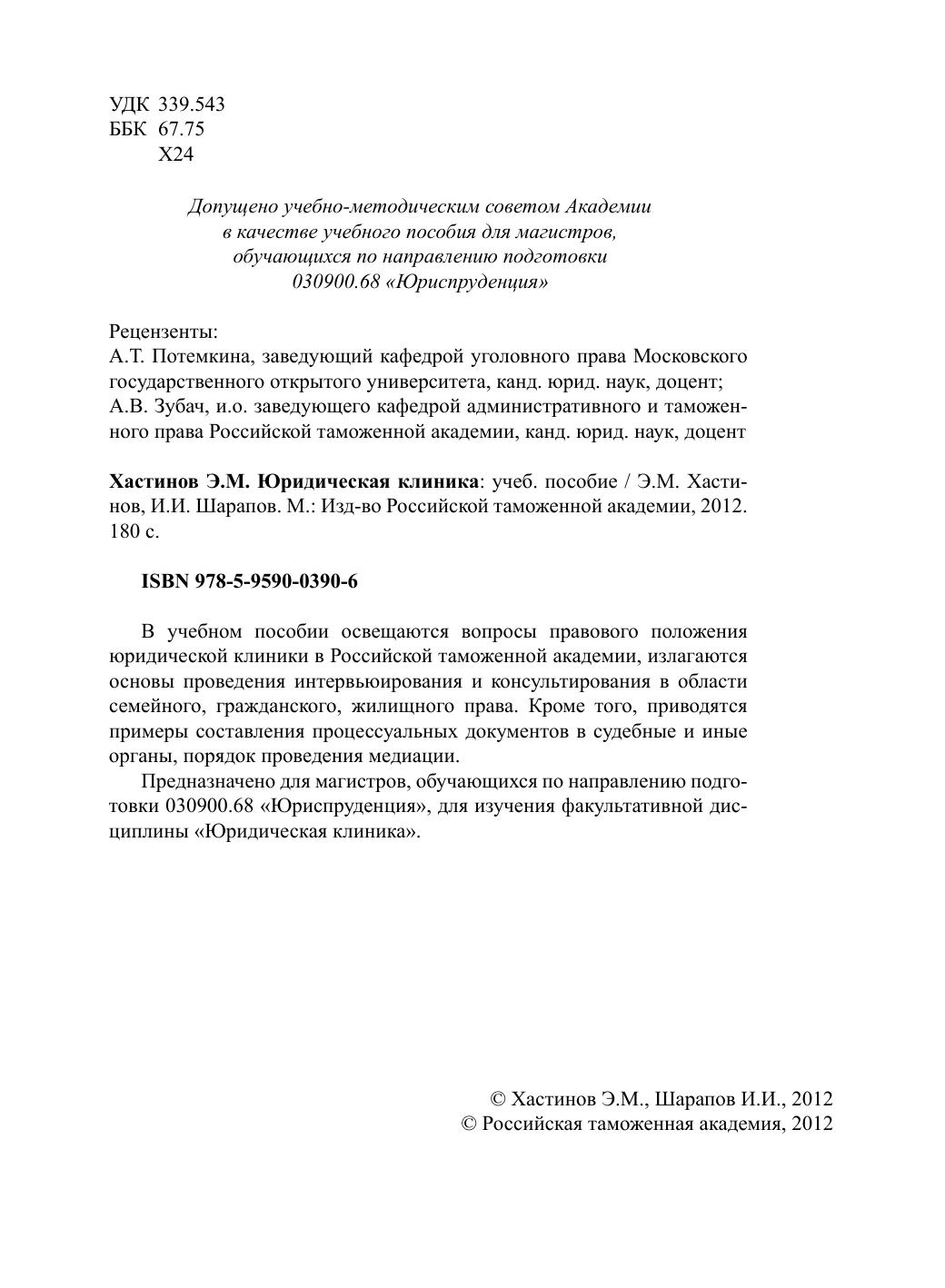 Гриф: Допущено учебно-методическим советом Академии в качестве учебного пособия для магистров, обучающихся по направлению подготовки 030900.68 «Юриспруденция»