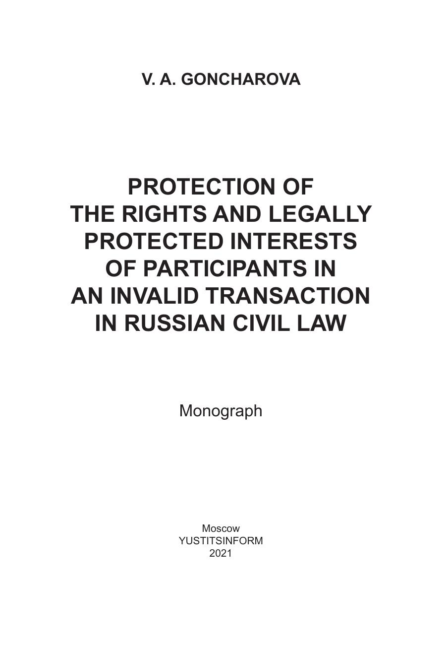 Защита прав и охраняемых законом интересов участников недействительной сделки в гражданском праве России