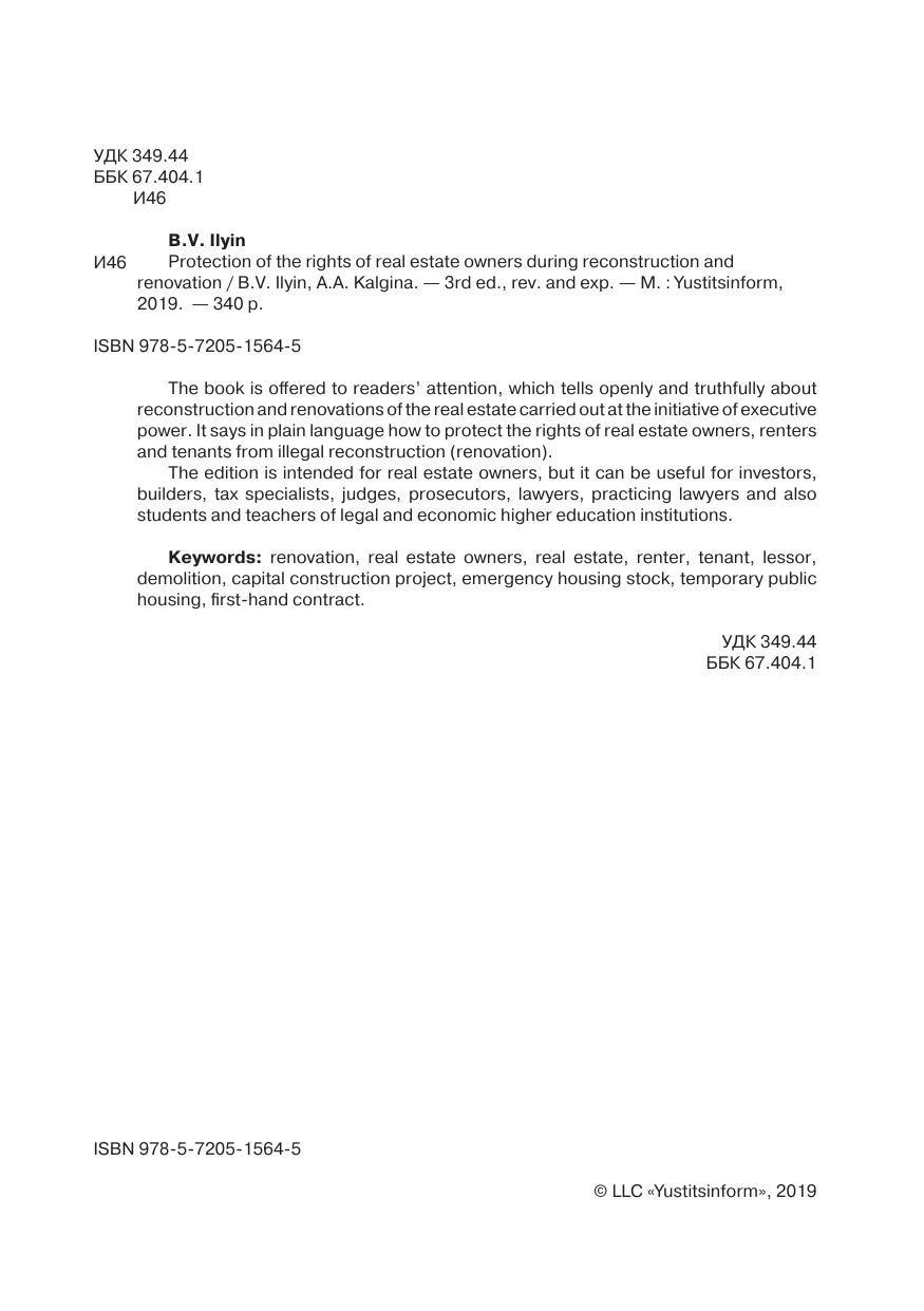 Издание предназначено для владельцев недвижимости, но может быть полезно инвесторам, строителям, налоговикам, судьям, прокурорам, адвокатам, практикующим юристам, а также студентам и преподавателям юридических и экономических вузов.