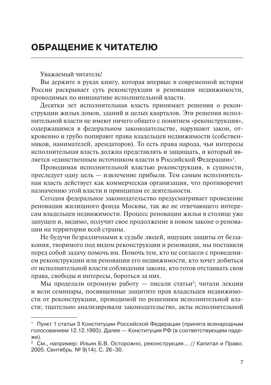 В предлагаемой вниманию читателя книге открыто и правдиво рассказано о реконструкции и реновации недвижимости, которые проводятся по инициативе исполнительной власти. Простым и доступным языком говорится о том, как защищать права собственников, нанимателей и арендаторов недвижимости от незаконной реконструкции (реновации).