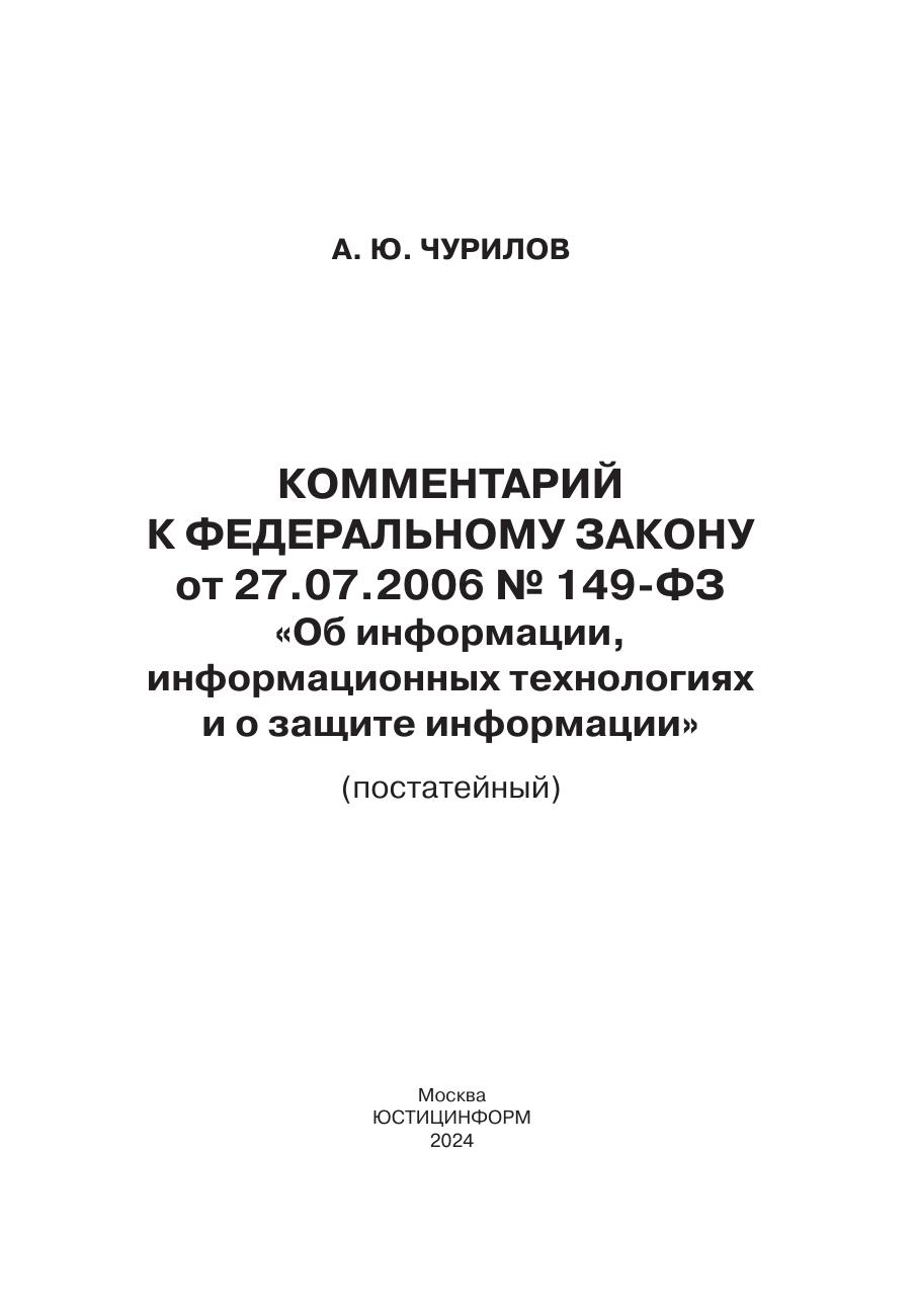 Комментарий к Федеральному закону от 27.07.2006 № 149-ФЗ «Об информации, информационных технологиях и о защите информации» (постатейный)