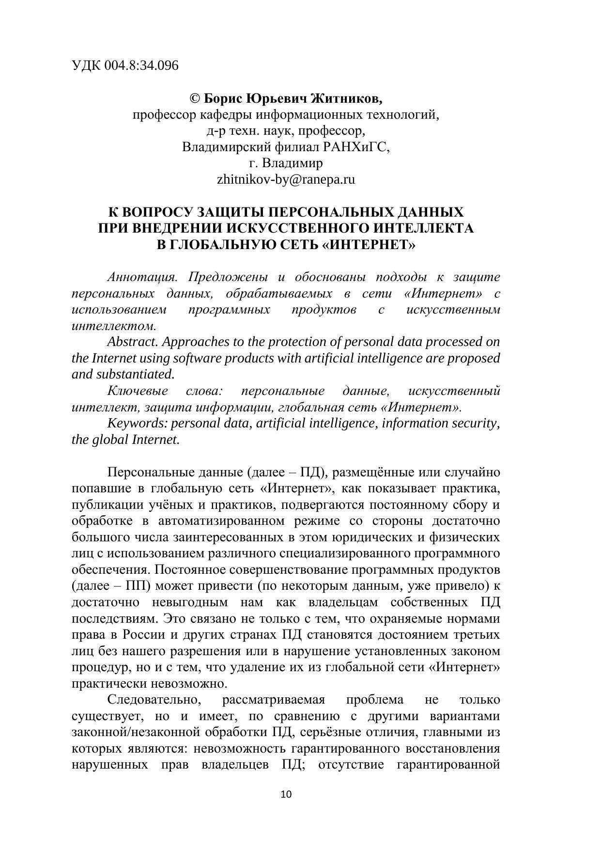 18 марта во Владимирском филиале РАНХиГС состоялась научно-практическая конференция с международным участием «Правовое и этическое регулирование роботизации и внедрения искусственного интеллекта (ИИ)». Организатором конференции выступил Владимирский филиал Российской академии народного хозяйства и государственной службы при Президенте Российской Федерации. Конференция была посвящена обсуждению основных положений формирования и реализации государственной политики правового и этического регулирования роботизации и внедрения искусственного интеллекта. В работе конференции приняли участие ученые, преподаватели и студенты Владимирского филиала РАНХиГС, представители научного и преподавательского сообщества других регионов России. В работе конференции затрагивались следующие вопросы и проблемы: эволюция ИИ; этико-правовое регулирование процесса внедрения ИИ; развитие правового регулирования ИИ; создание комплексной системы регулирования общественных отношений, возникающих в связи с развитием и использованием технологий ИИ; использование ИИ в сфере образования. Печатается по решению ученого совета Владимирского филиала РАНХиГС.