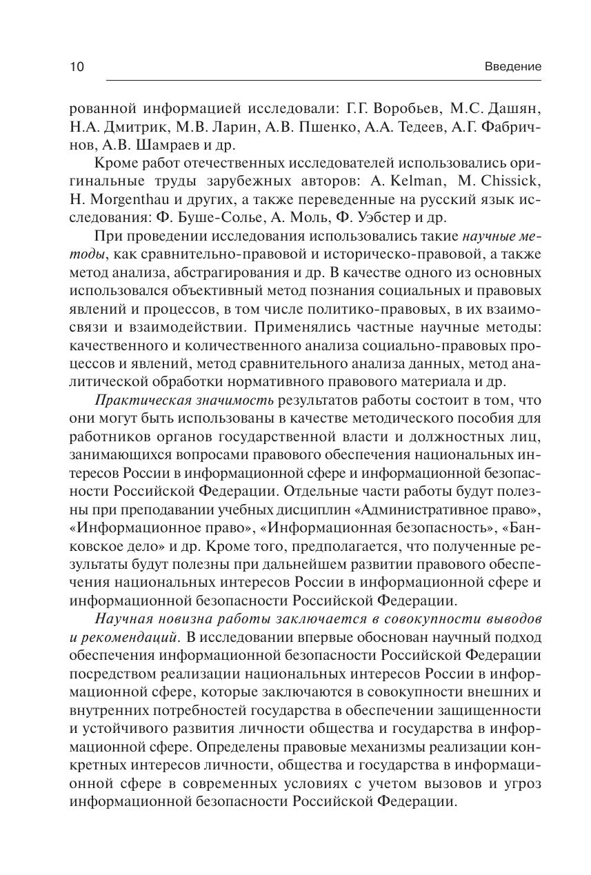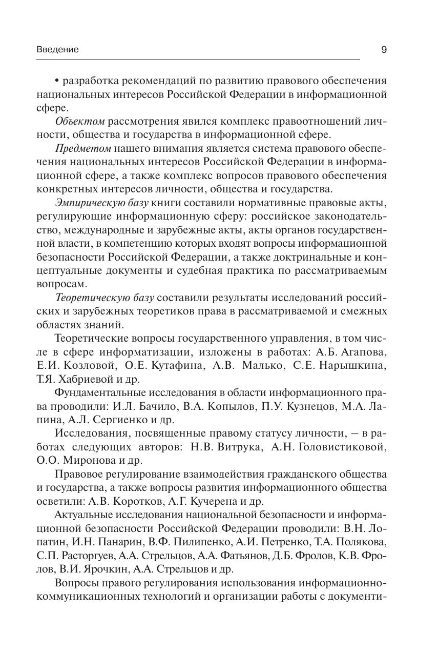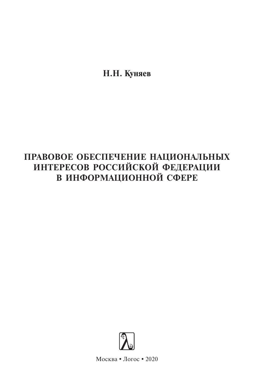 Рассмотрены актуальные проблемы правового регулирования отношений в информационной сфере. Раскрыты национальные интересы Российской Федерации в этой области. Сформулированы принципы правового обеспечения интересов личности, общества, государства в информационной сфере. Особое внимание уделено правовому обеспечению информационной безопасности Российской Федерации, дальнейшему совершенствованию ее нормативной правовой базы. Для научных работников, специалистов в области права и информационной безопасности. Может использоваться в учебном процессе со студентами высших учебных заведений, получающих образование по направлению подготовки «Информационная безопасность», специальностям «Юриспруденция», «Правоведение». Представляет интерес для работников государственного аппарата управления.