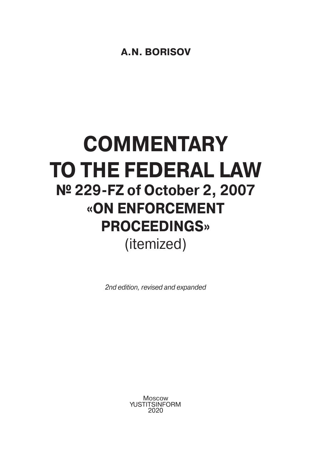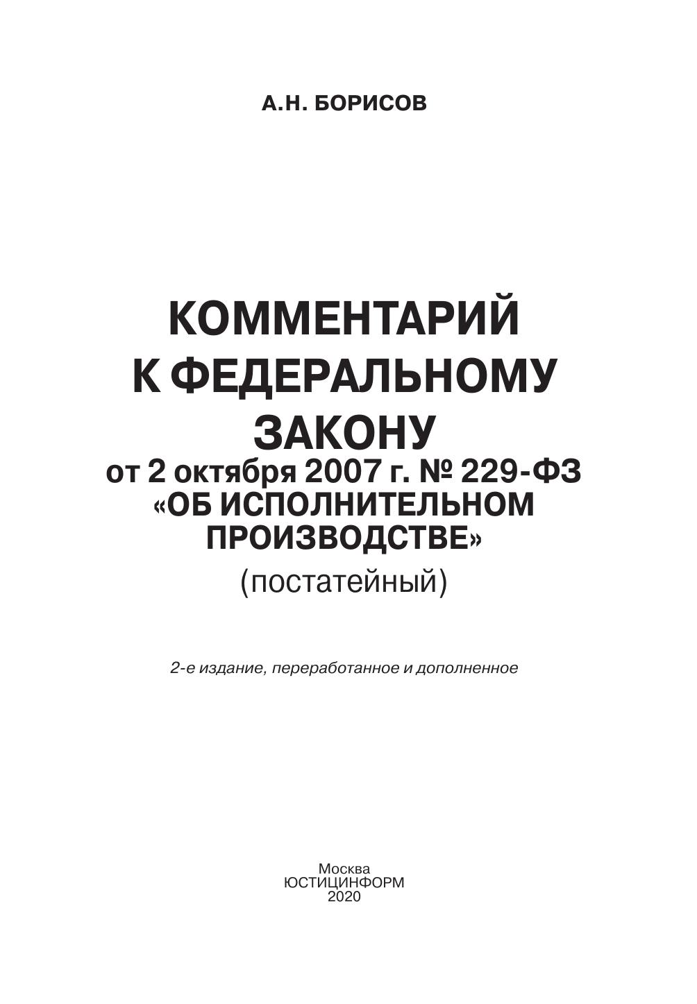 Комментарий к Федеральному закону от 2 октября 2007 г. № 229-ФЗ «Об исполнительном производстве» (постатейный)