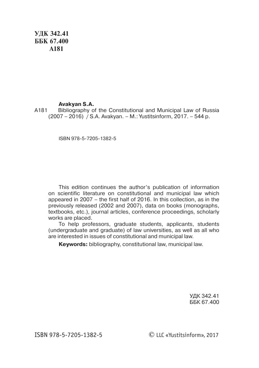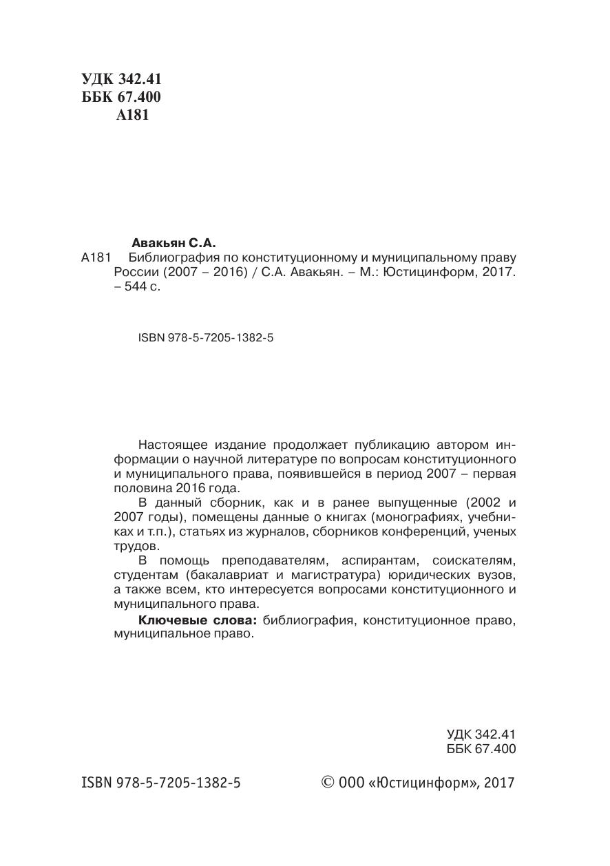 Настоящее издание продолжает публикацию автором информации о научной литературе по вопросам конституционного и муниципального права, появившейся в период 2007 – первая половина 2016 года.