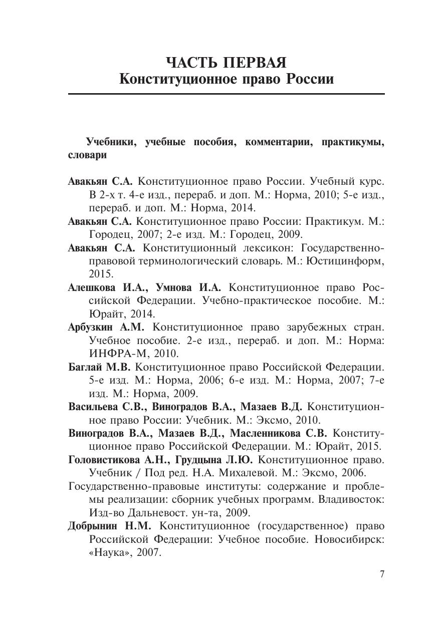 Библиография по конституционному и муниципальному праву России (2007 – 2016)