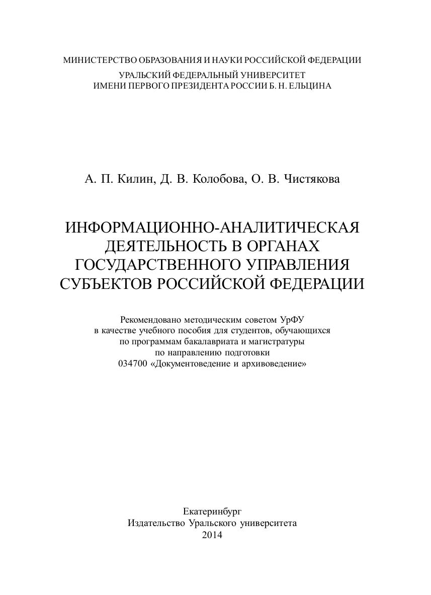 Информационно-аналитическая деятельность в органах государственного управления субъектов Российской Федерации: учеб. пособие