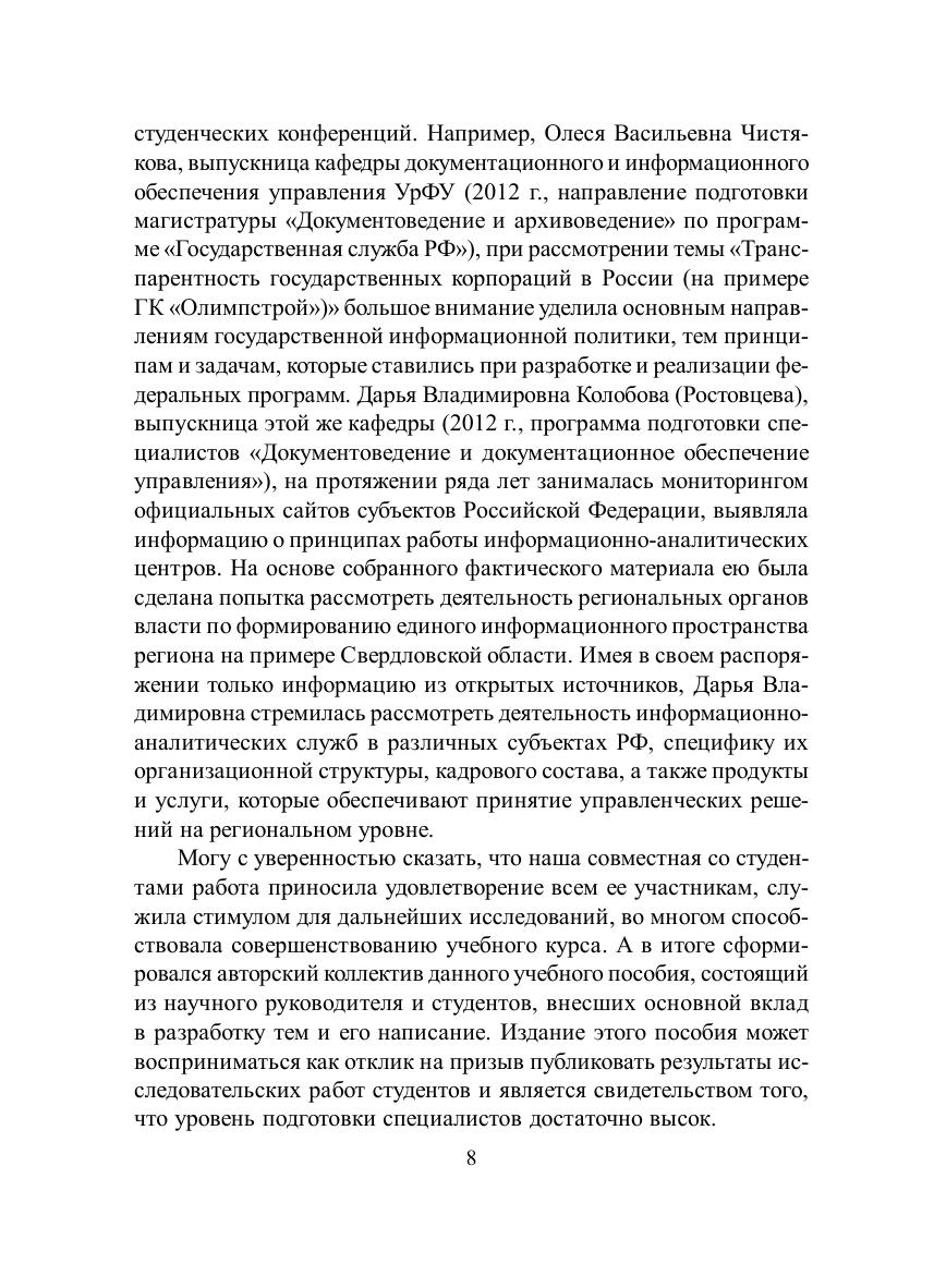 В учебном пособии рассматриваются различные аспекты информационно-аналитической деятельности в контексте построения информационного общества, выработки информационной политики государства и формирования единого информационного пространства региона. На основе обобщения теоретического материала, анализа официальных сайтов и проблемно-ориентированных интернет-ресурсов проанализированы организационные принципы деятельности информационно-аналитических служб, требования к их кадровому составу, проведен сравнительный анализ информационно-аналитических документов. Для студентов, исследователей, специалистов информационно-аналитических служб, государственных и муниципальных служащих.