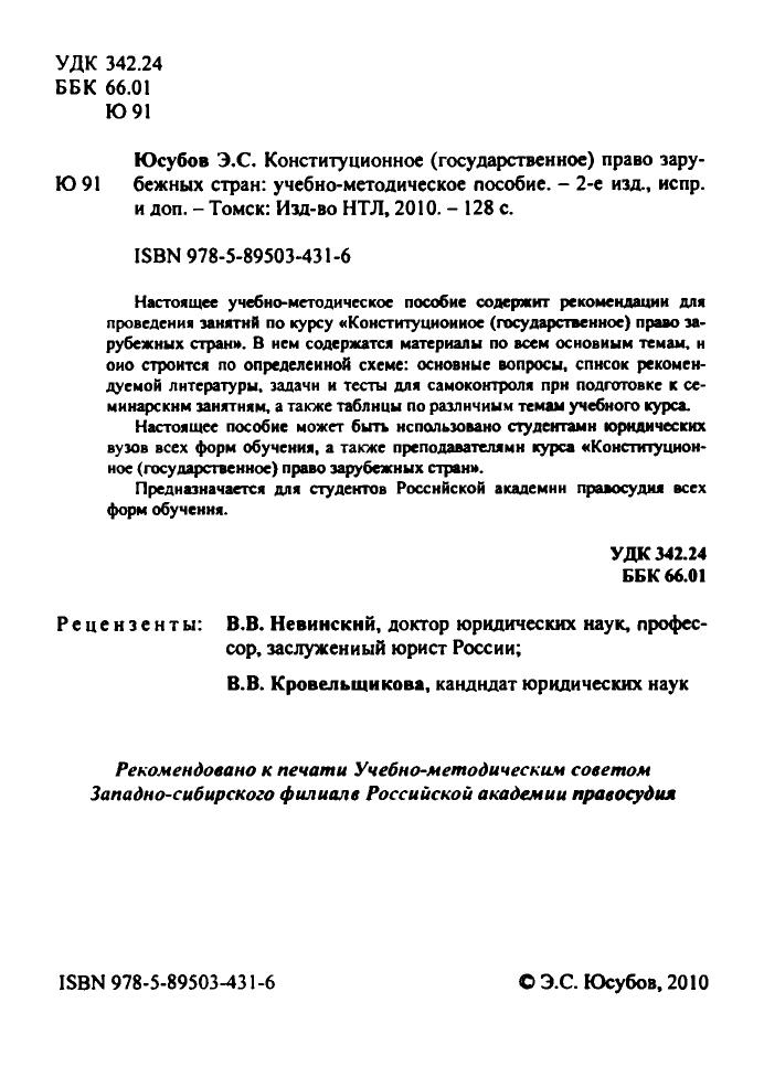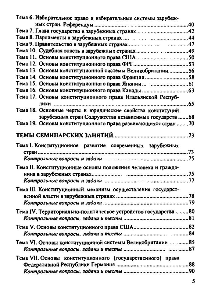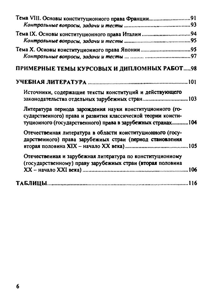 Настоящее учебно-методическое пособие содержит рекомендации для проведения занятнй по курсу «Конституционное (государственное) право зарубежных стран». В нем содержатся материалы по всем основным темам, оно строится по определенной схеме: основные вопросы, список рекомендуемой литературы, задачи н тесты для самоконтроля прн подготовке к семинарским занятиям, а также таблицы по различным темам учебного курса. Настоящее пособие может быть использовано студентами юридических вузов всех форм обучения, а также преподавателями курса «Конституционное (государственное) право зарубежных стран». Предназначается для студентов Российской академии правосудия всех форм обучения.