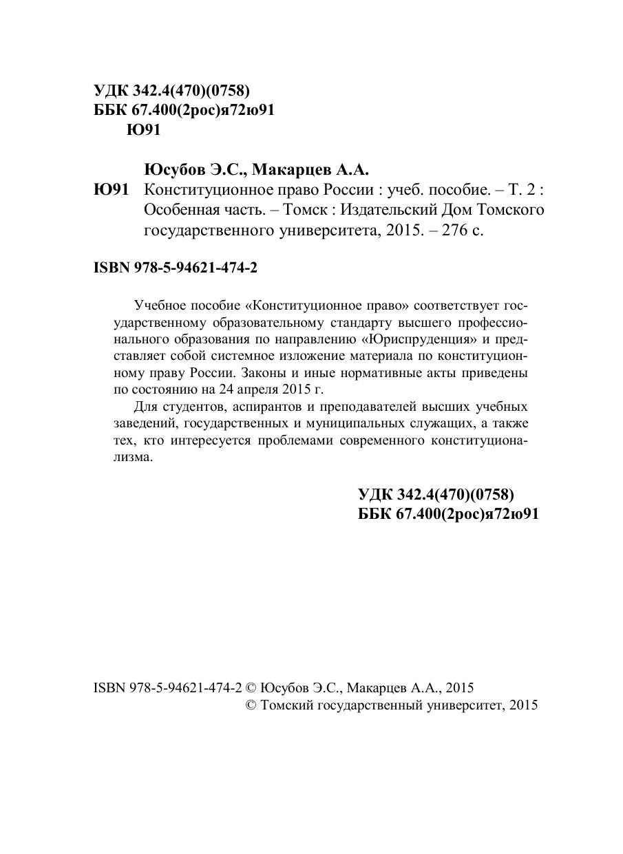 Конституционное право России. Т. 2 : Особенная часть