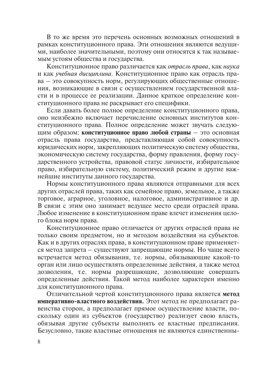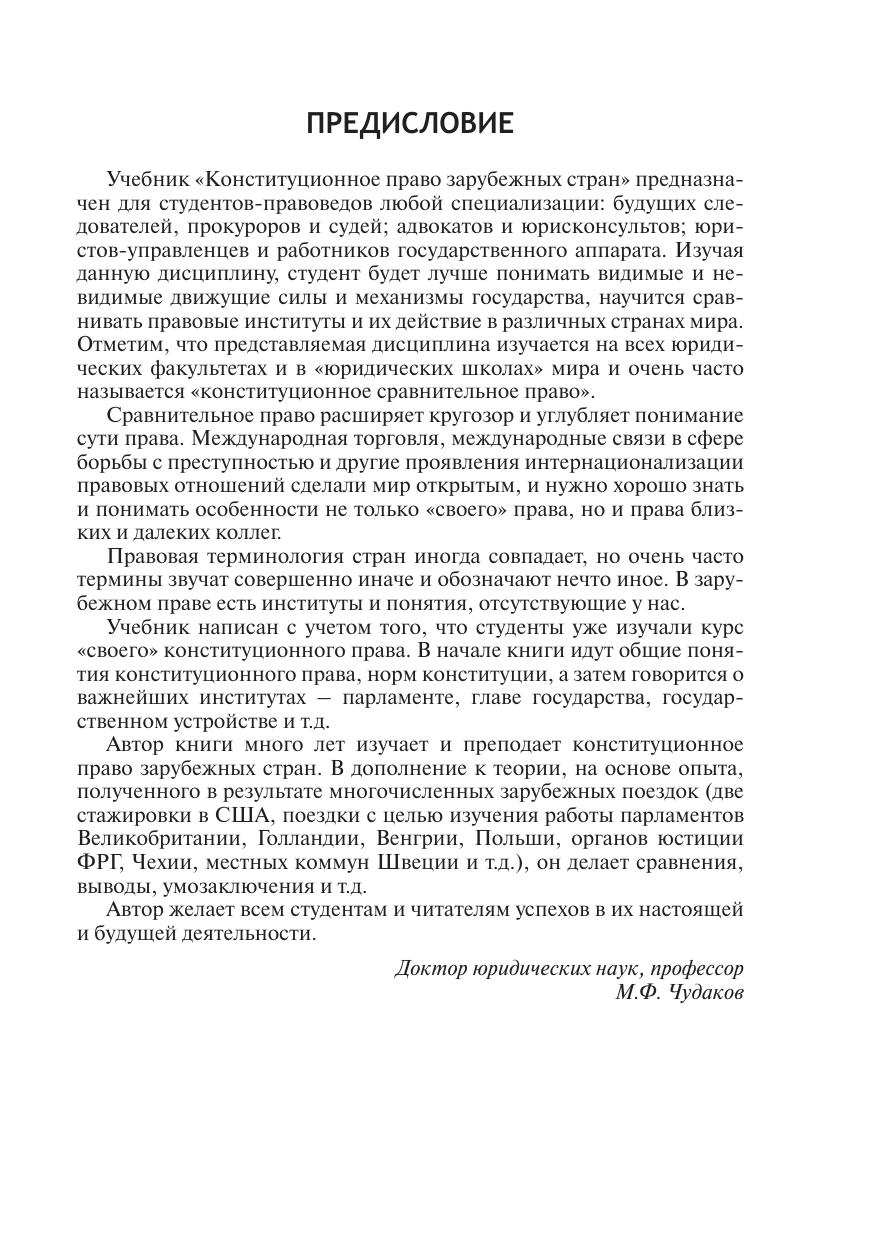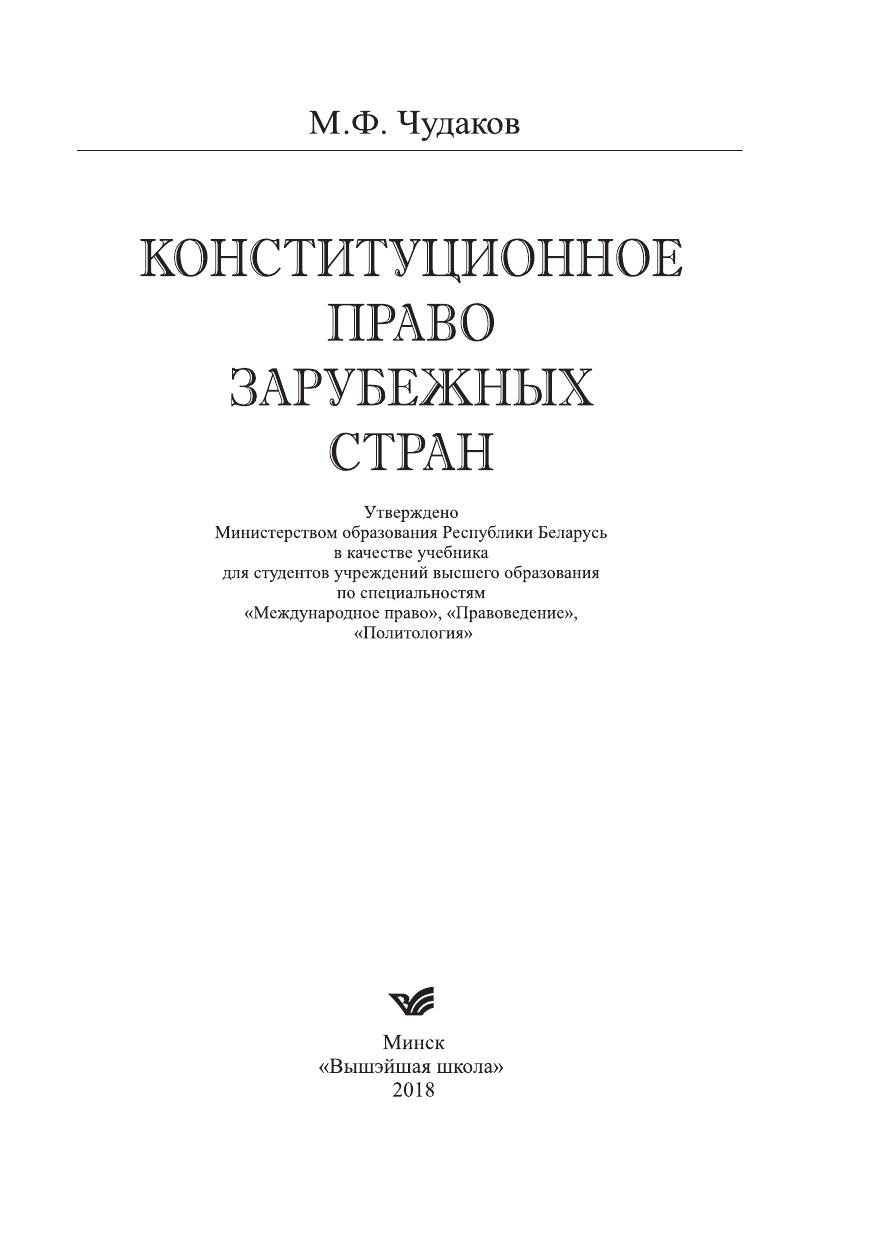 В учебнике раскрываются предмет, сущность, источники и система конституционного права зарубежных стран, понятие и основы конституционного строя общества и государства. Большое внимание уделяется политическим партиям и партийным системам зарубежных стран, зарубежным союзам. Рассматриваются конституционно-правовой статус личности в ведущих государствах мира, а также вопросы, касающиеся глав государств, правительства, исполнительной власти за рубежом. Адресуется студентам юридических специальностей учреждений высшего образования, обучающихся по специальностям «Правоведение», «Международное право», практическим работникам, преподавателям, магистрантам и аспирантам. Будет полезен широкому кругу читателей, интересующихся вопросами конституционного права зарубежных стран.