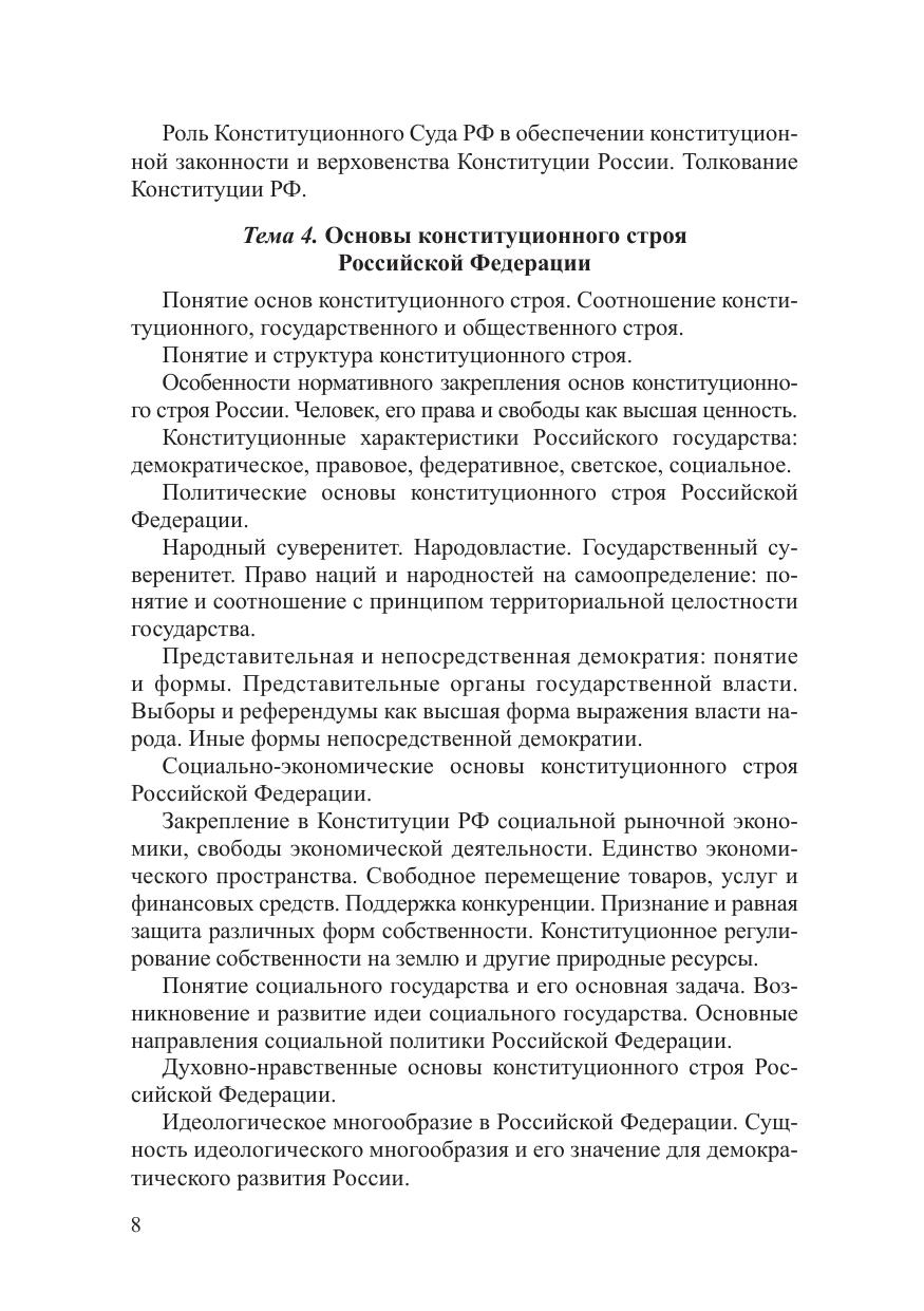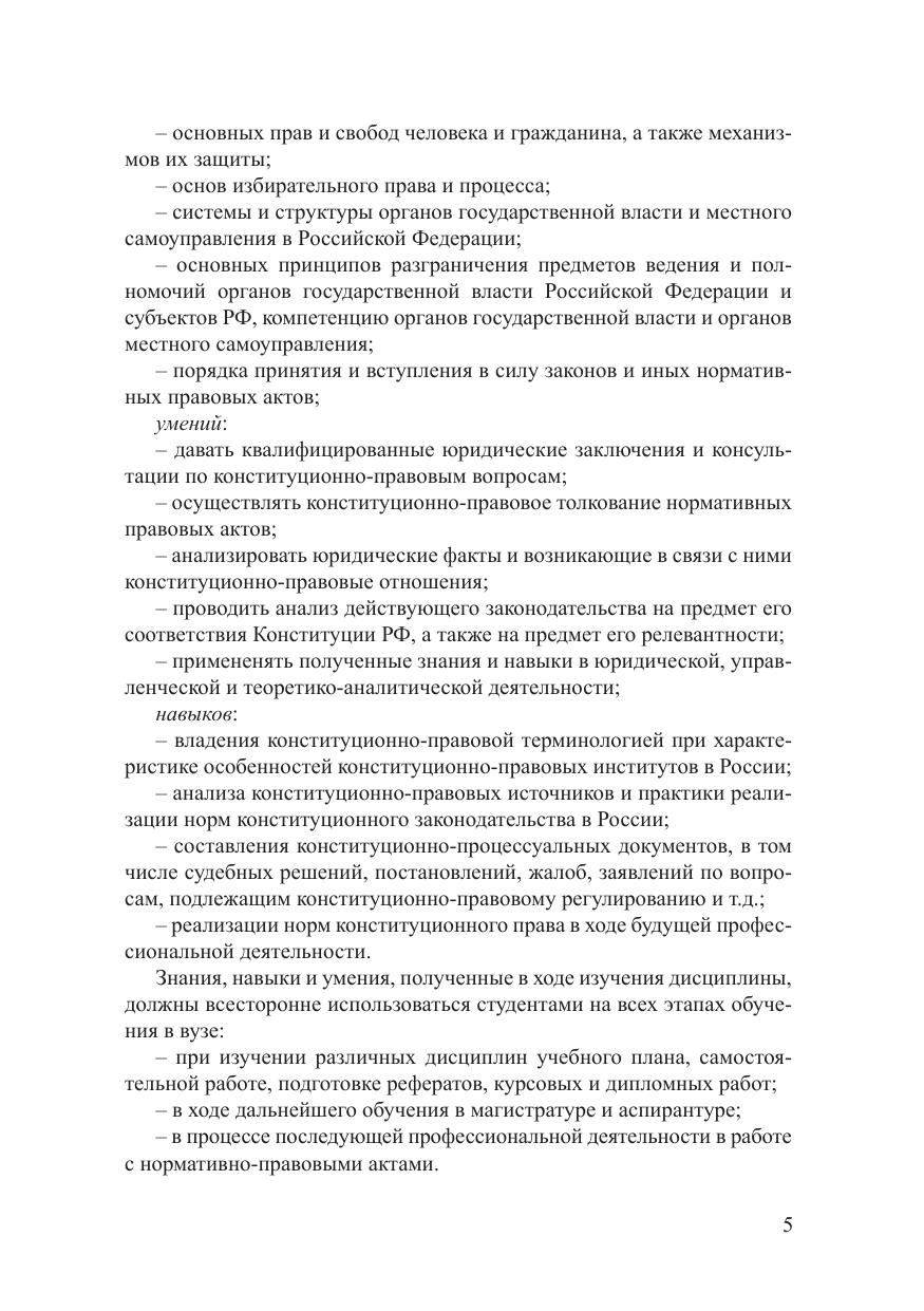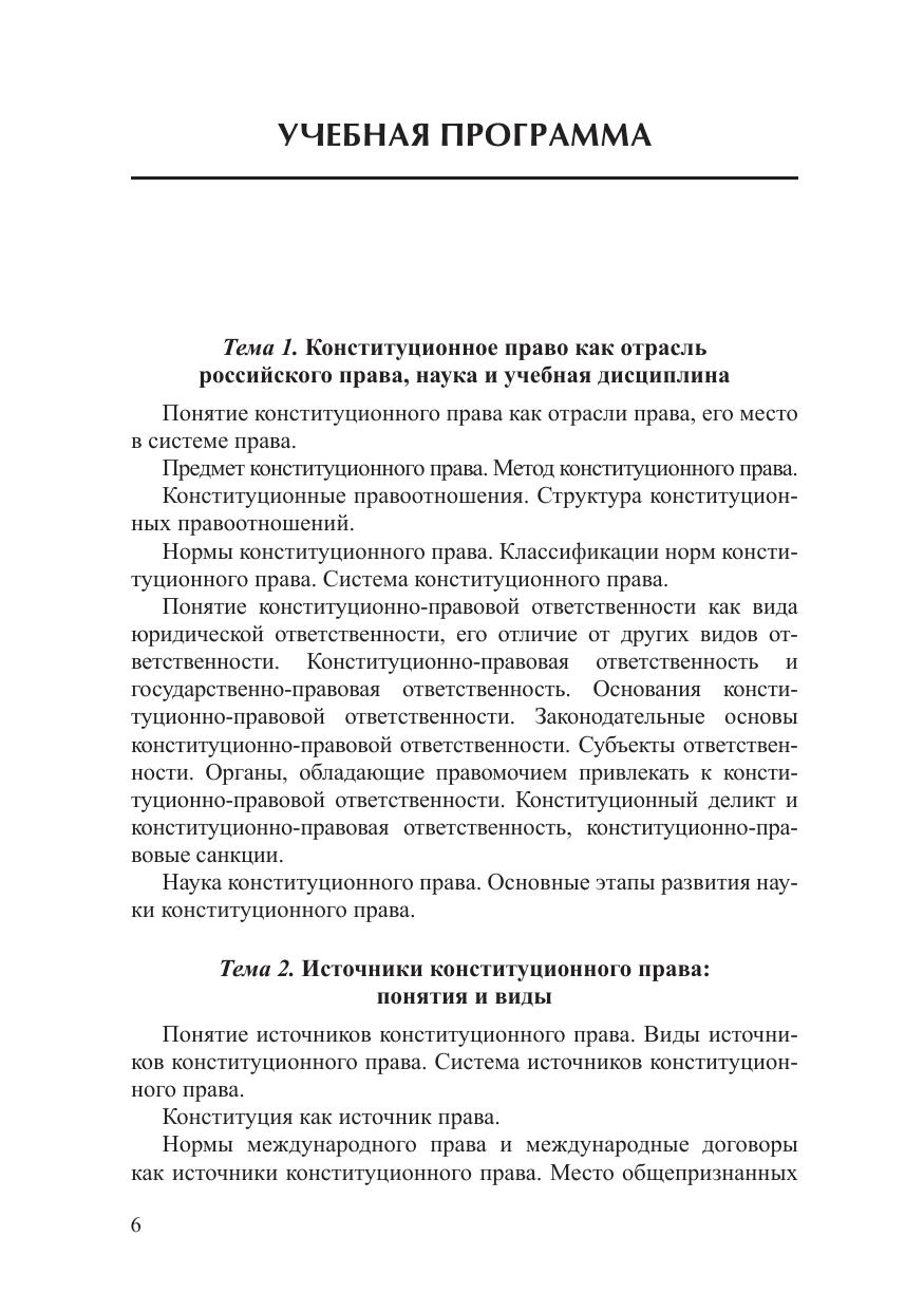 В учебно-методическом пособии представлены материалы для изучения дисциплины конституционного права России, изложенные в соответствии с федеральными государственными образовательными стандартами высшего образования: бакалавриат (направление подготовки 40.03.01 «Юриспруденция»; приказ Минобрнауки России от 13 авг. 2020 г. № 1011 в ред. от 26 нояб. 2020 г.); специалитет (40.05.01 «Правовое обеспечение национальной безопасности»; (приказ Минобрнауки России от 31 авг. 2020 г. № 1138 в ред. от 26 нояб. 2020). Учебно-методическое пособие включает программу учебного курса, тематику семинарских занятий, тесты, задачи, примерные темы докладов, курсовых и дипломных работ, вопросы для самоконтроля, библиографические списки. Методические рекомендации и практические задания позволяют систематизировать подготовку студентов к семинарским занятиям, а также помогают в самостоятельной работе. Для студентов бакалавриата, специалитета, магистратуры, аспирантуры, а также практических работников.
