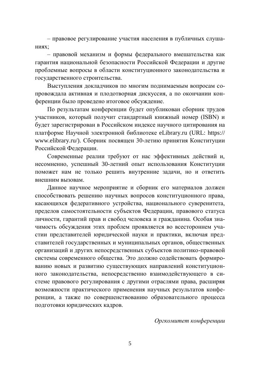 Конституция России и развитие законодательства: сборник материалов V Всероссийской научно-практической конференции, посвященной Дню Конституции Российской Федерации