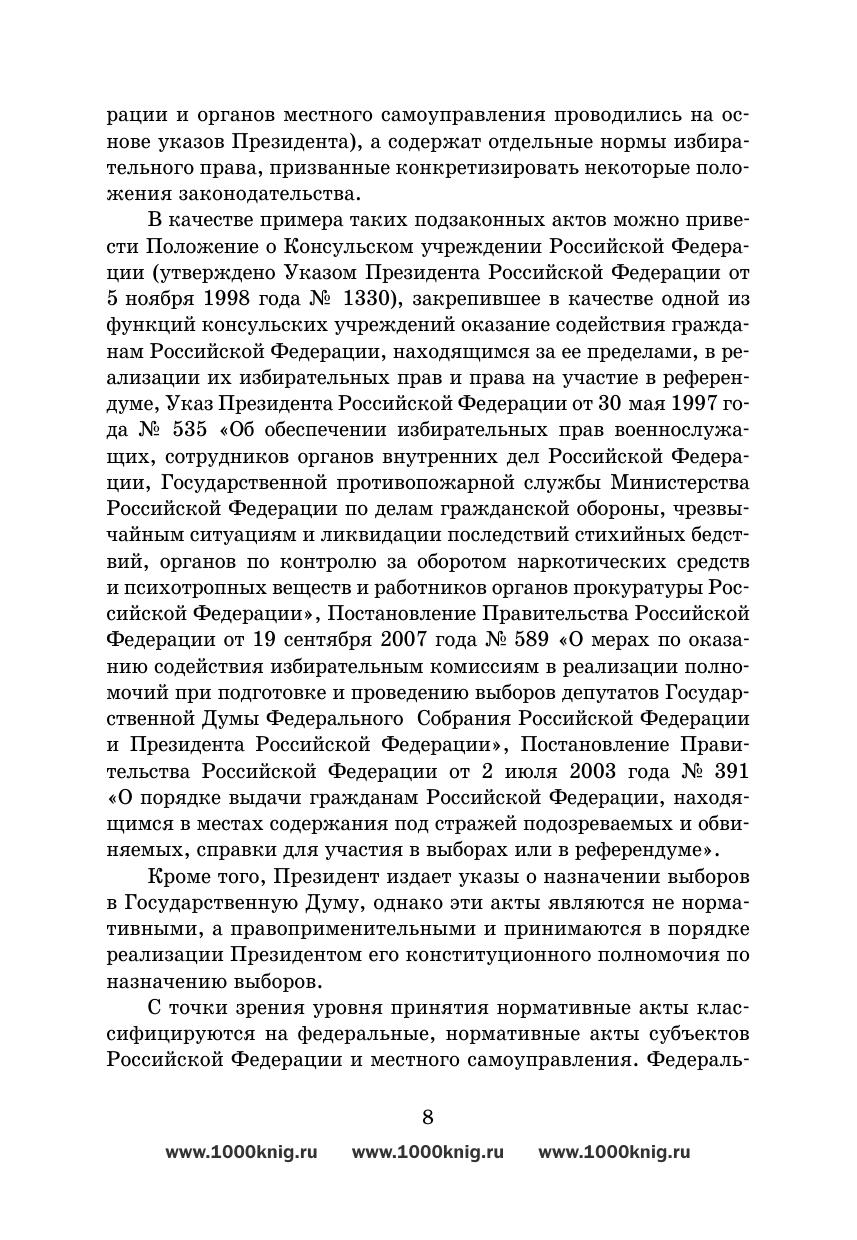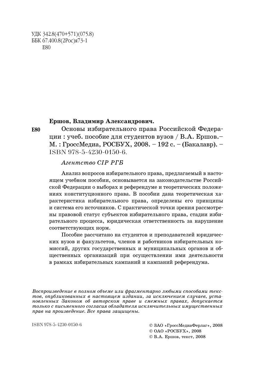 Анализ вопросов избирательного права, предлагаемый в настоящем учебном пособии, основывается на законодательстве Российской Федерации о выборах и референдуме и теоретических положениях конституционного права. В пособии дана теоретическая характеристика избирательного права, определены его принципы и система его источников. С практической точки зрения рассмотрены правовой статус субъектов избирательного права, стадии избирательного процесса, юридическая ответственность за нарушение соответствующих норм.