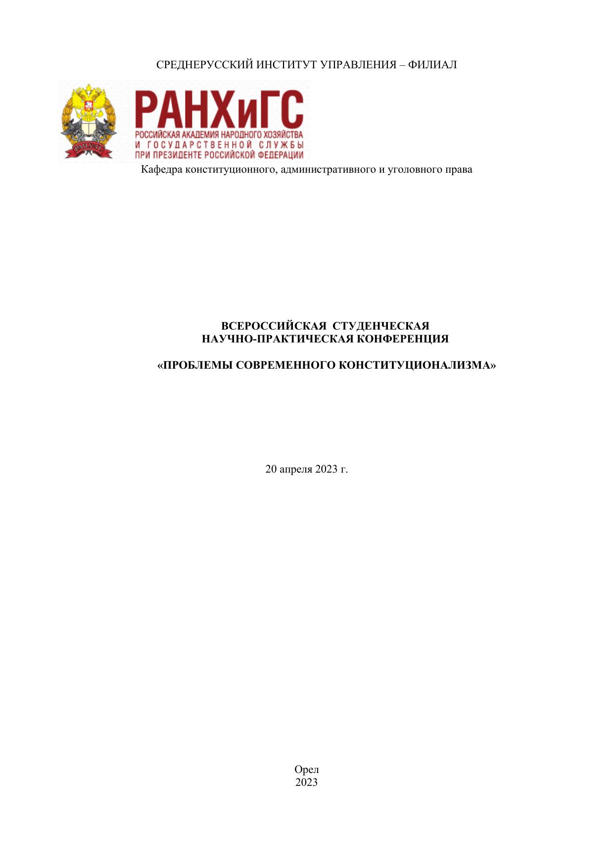 Проблемы современного конституционализма. Сборник статей и докладов всероссийской научно-практической студенческой конференции (20.04.2023 г.)