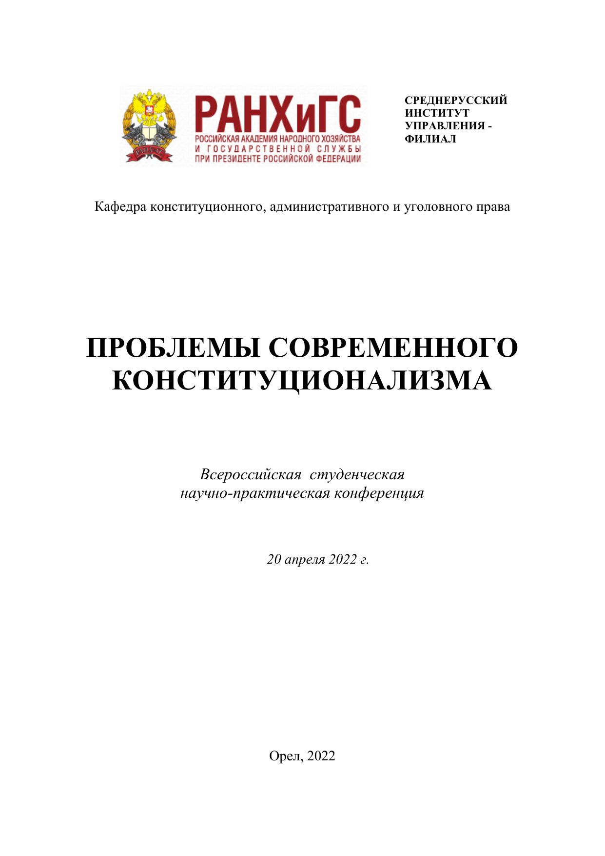 Проблемы современного конституционализма. Сборник статей и докладов всероссийской научно-практической студенческой конференции (20.04.2022 г.)