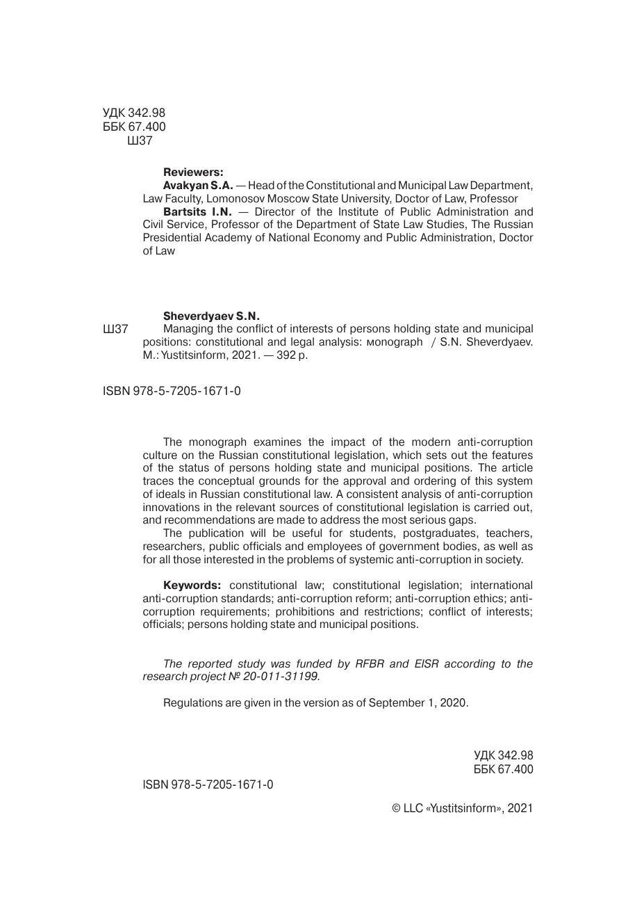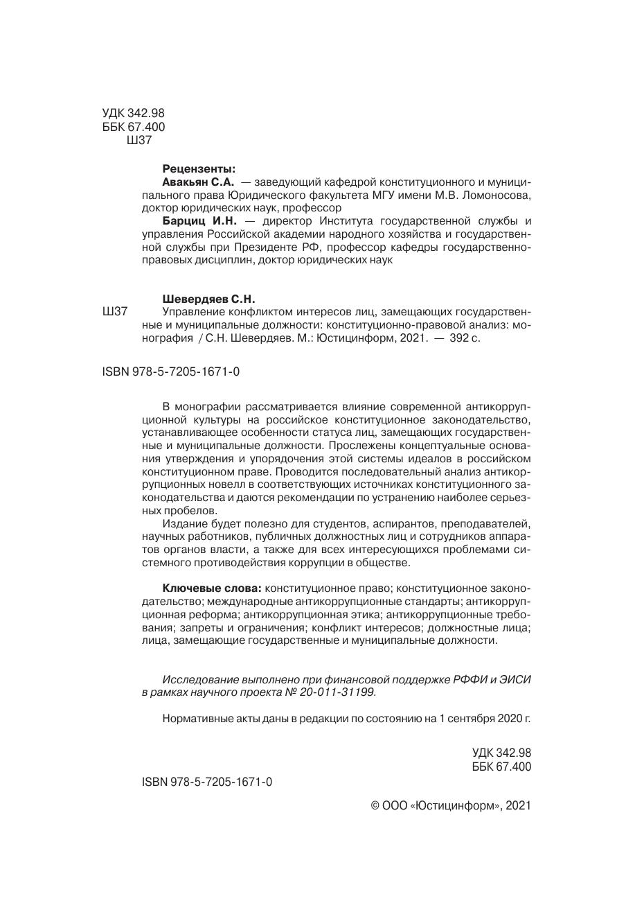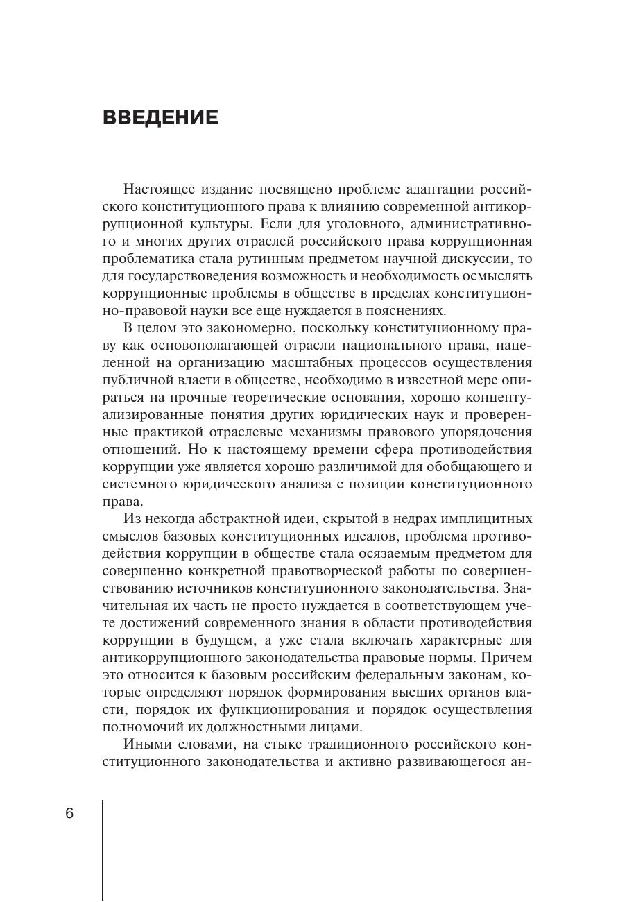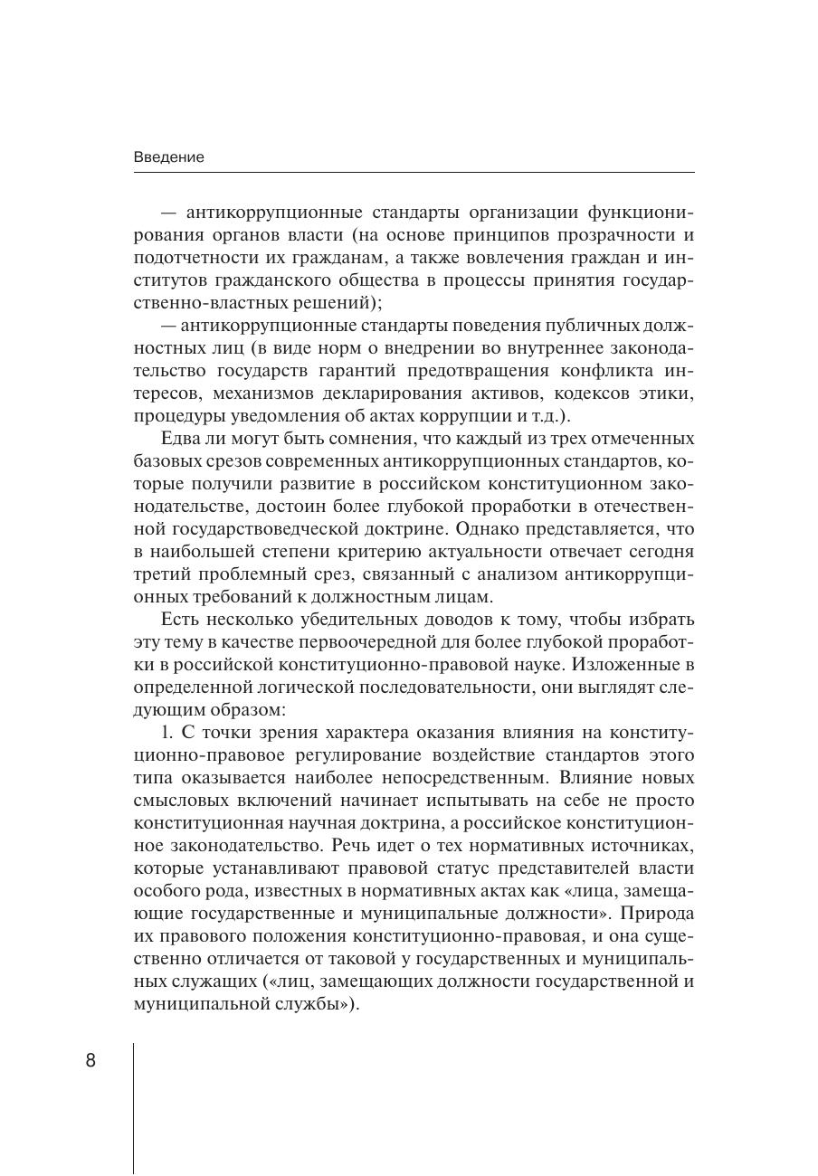 В монографии рассматривается влияние современной антикоррупционной культуры на российское конституционное законодательство, устанавливающее особенности статуса лиц, замещающих государственные и муниципальные должности. Прослежены концептуальные основания утверждения и упорядочения этой системы идеалов в российском конституционном праве. Проводится последовательный анализ антикоррупционных новелл в соответствующих источниках конституционного законодательства и даются рекомендации по устранению наиболее серьезных пробелов. Издание будет полезно для студентов, аспирантов, преподавателей, научных работников, публичных должностных лиц и сотрудников аппаратов органов власти, а также для всех интересующихся проблемами системного противодействия коррупции в обществе.