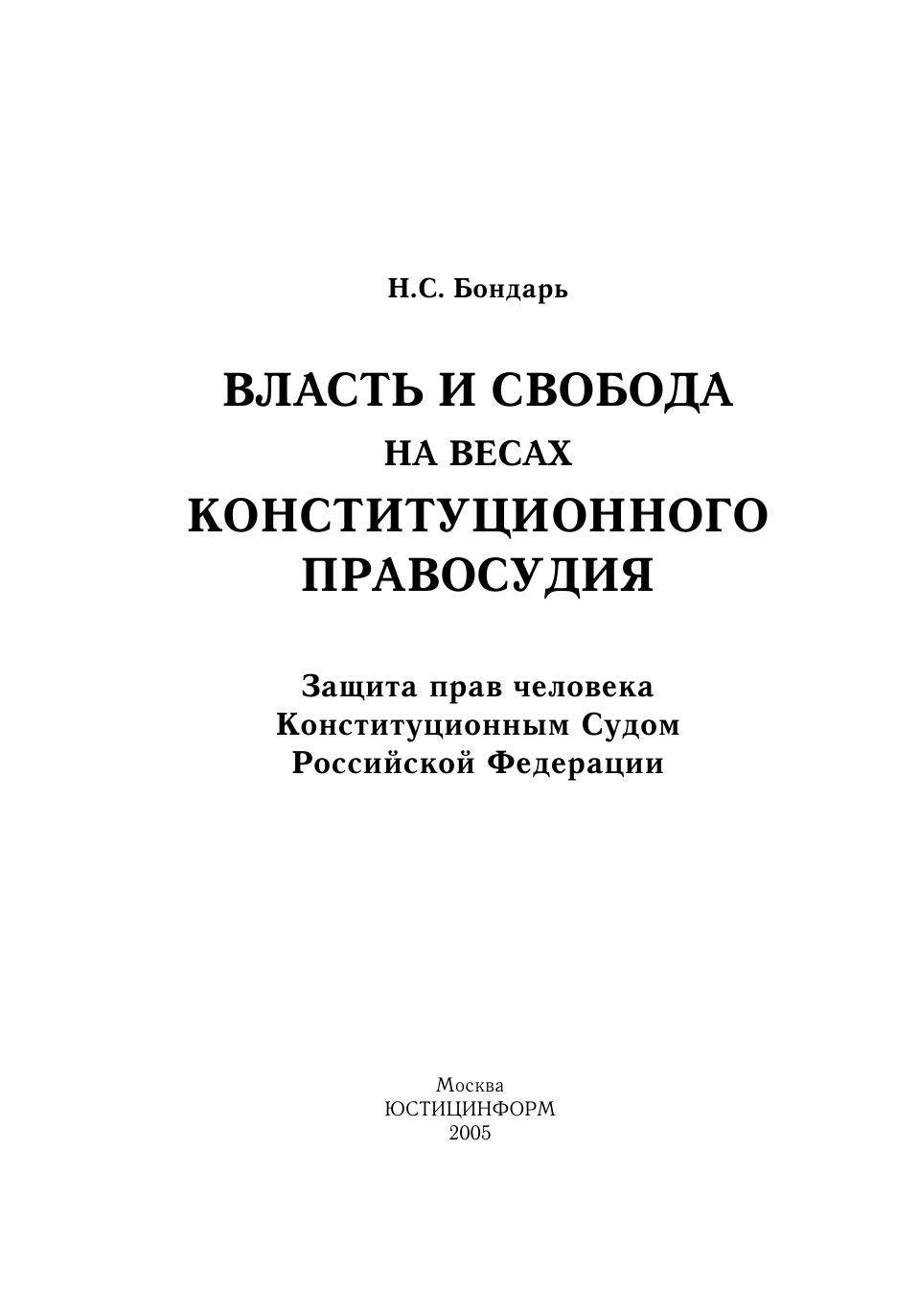 Власть и свобода на весах конституционного правосудия: защита прав человека Конституционным Судом Российской Федерации