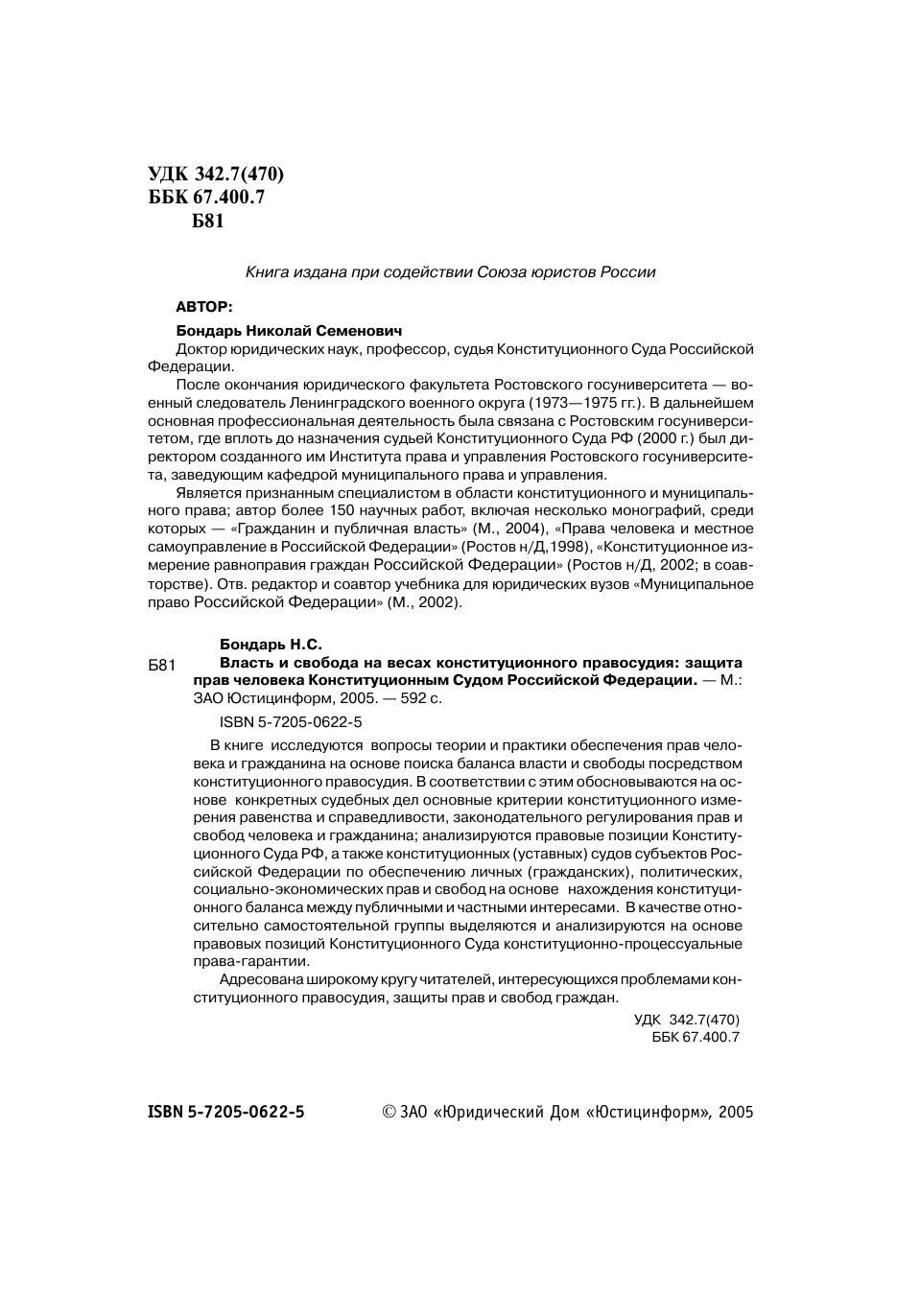 В книге исследуются вопросы теории и практики обеспечения прав человека и гражданина на основе поиска баланса власти и свободы посредством конституционного правосудия. В соответствии с этим обосновываются на основе конкретных судебных дел основные критерии конституционного измерения равенства и справедливости, законодательного регулирования прав и свобод человека и гражданина анализируются правовые позиции Конституционного Суда РФ, а также конституционных (уставных) судов субъектов Российской Федерации по обеспечению личных (гражданских), политических, социально-экономических прав и свобод на основе нахождения конституционного баланса между публичными и частными интересами. В качестве относительно самостоятельной группы выделяются и анализируются на основе правовых позиций Конституционного Суда конституционно-процессуальные права-гарантии.Адресована широкому кругу читателей, интересующихся проблемами конституционного правосудия, защиты прав и свобод граждан.