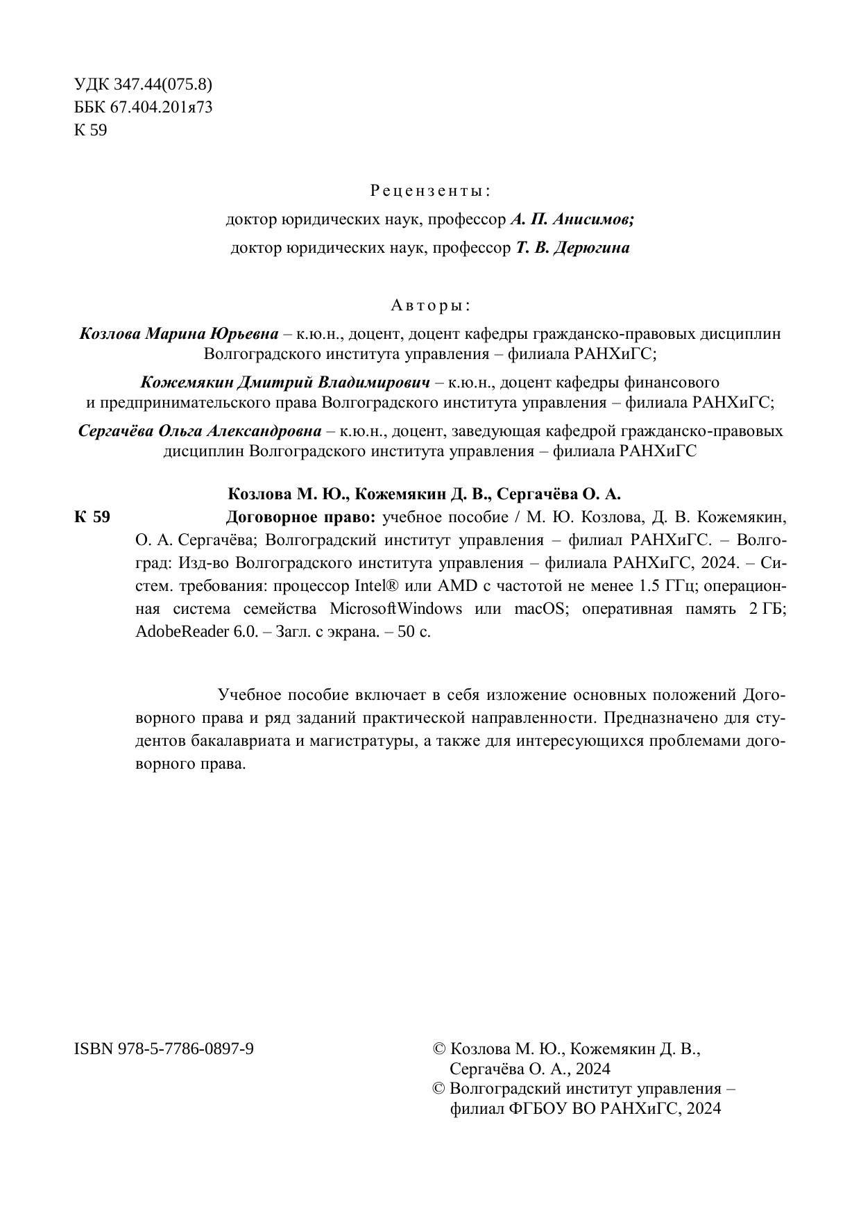 Учебное пособие включает в себя изложение основных положений Дого-ворного права и ряд заданий практической направленности. Предназначено для сту-дентов бакалавриата и магистратуры, а также для интересующихся проблемами дого-ворного права.