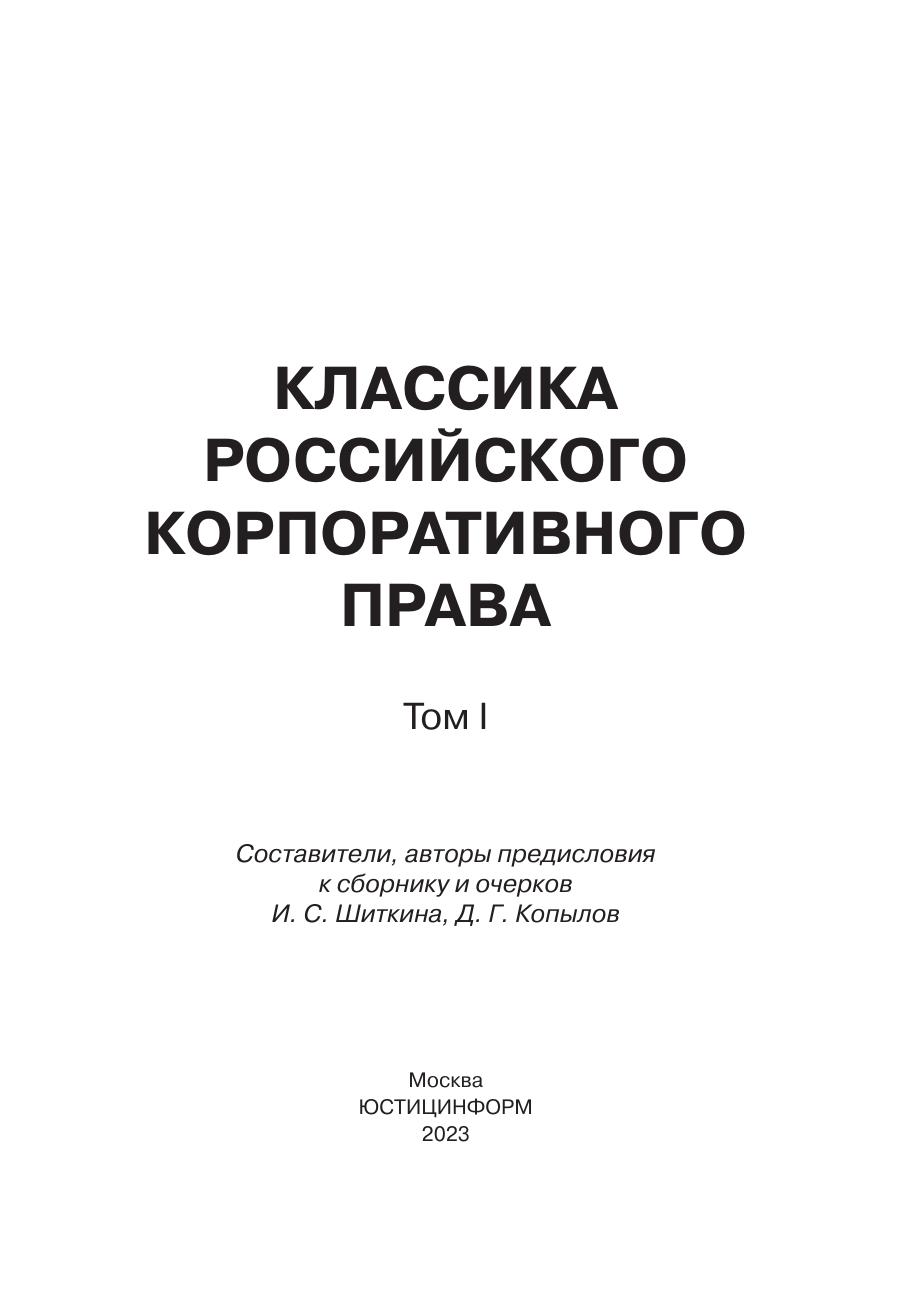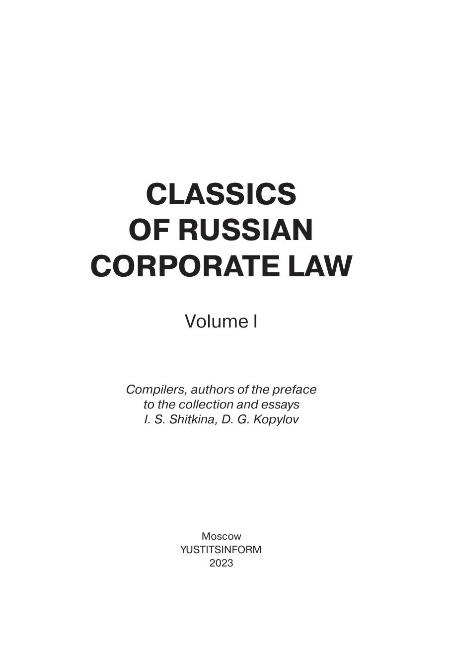 Классика российского корпоративного права – Том I