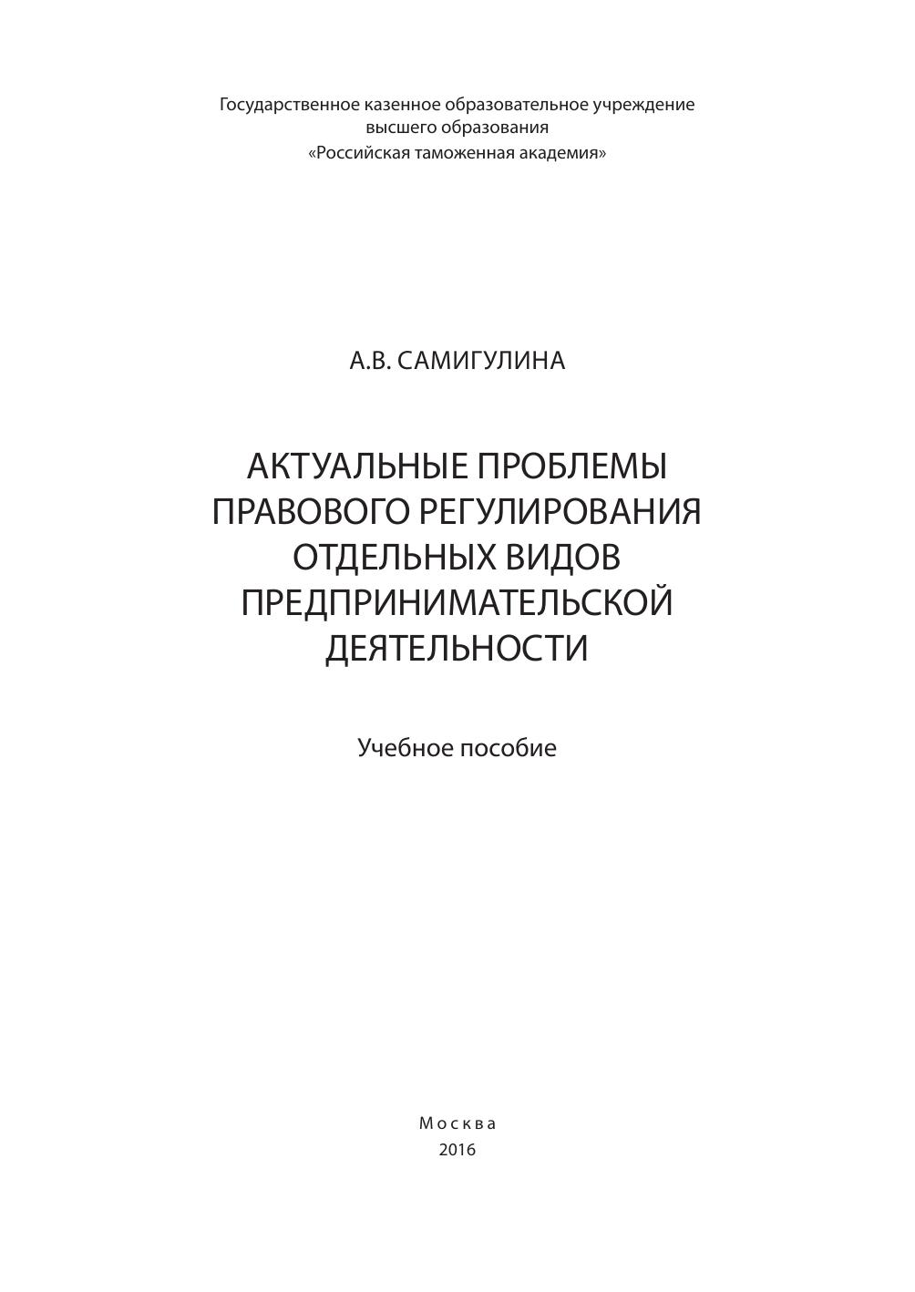 Актуальные проблемы правового регулирования отдельных видов предпринимательской деятельности