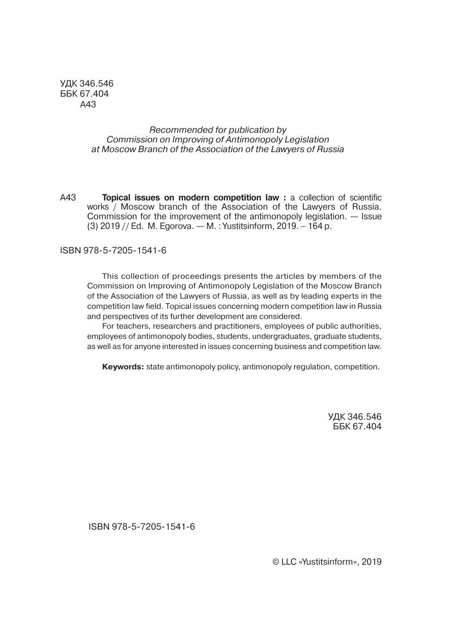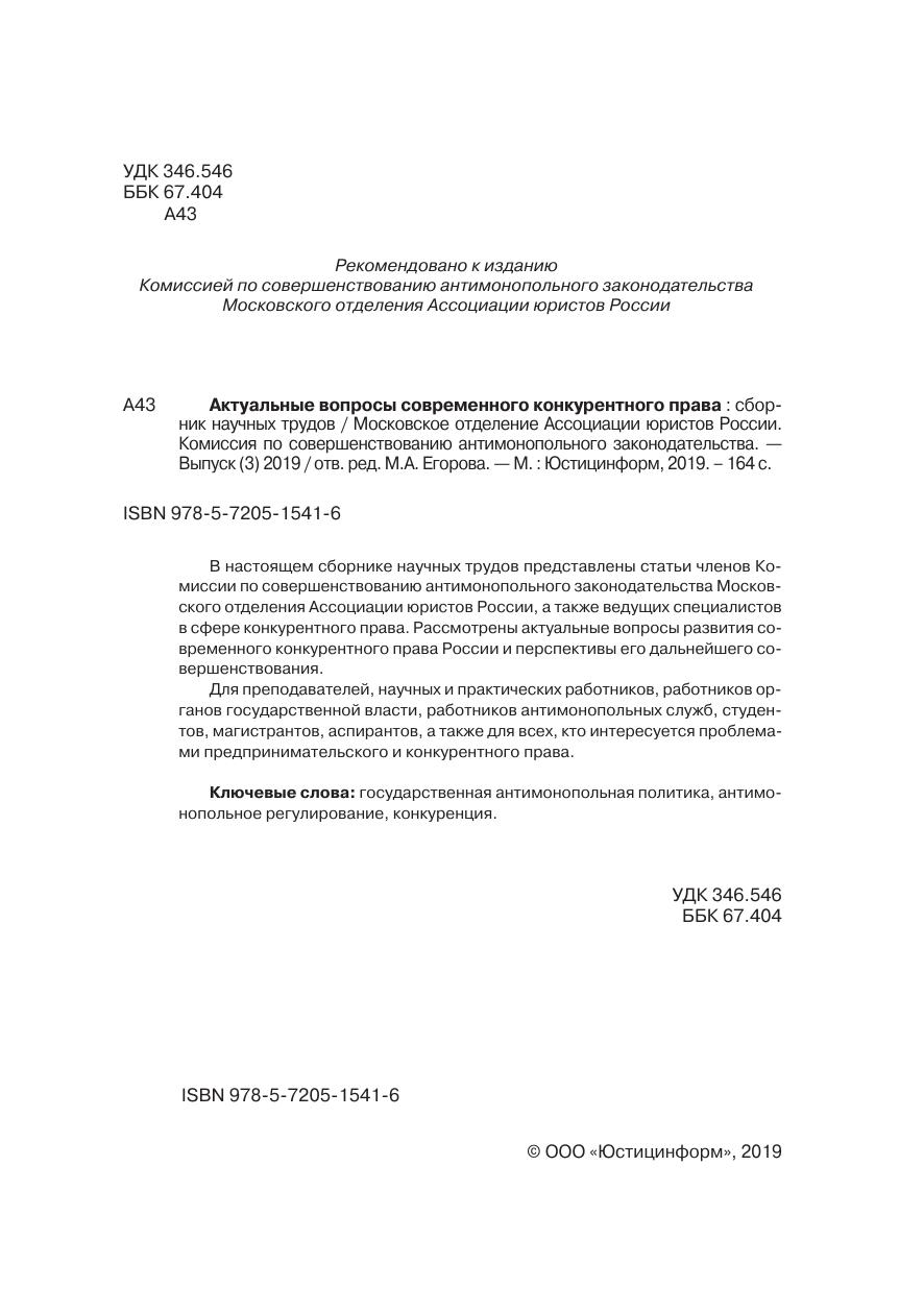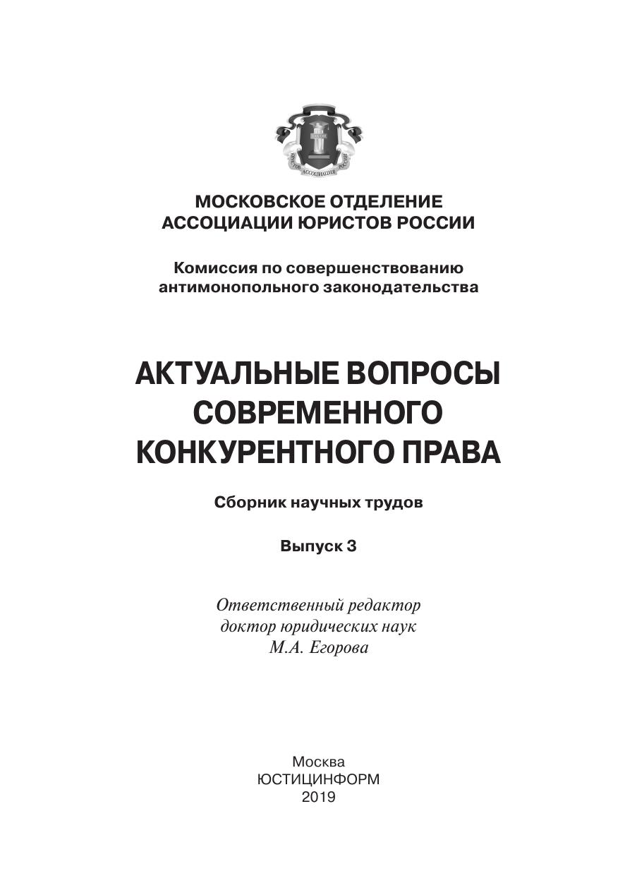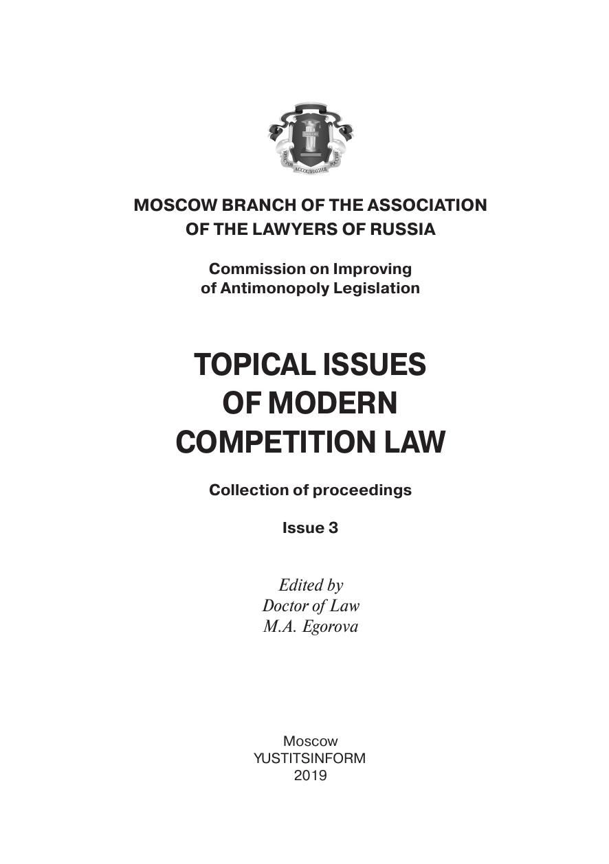 Актуальные вопросы современного конкурентного права. Выпуск (3) 2019