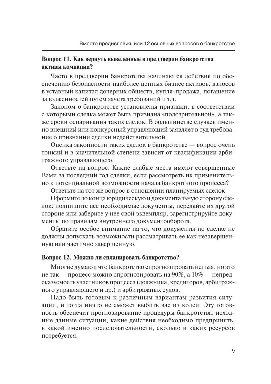 Во многих случаях развитие бизнеса невозможно без привлечения ресурсов кредиторов, но не всегда прогнозы развития бизнеса сбываются, и тогда компания не может своевременно расплатиться с долгами. В результате начинается самая пугающая любого бизнесмена процедура — банкротство. Как избежать банкротства? Как правильно действовать при угрозе банкротства и в процедуре банкротства? Как результативно защитить свои права и интересы? Эта книга написана для руководителей и владельцев компаний, желающих максимально эффективно использовать имеющиеся возможности для защиты интересов и достижения своих целей