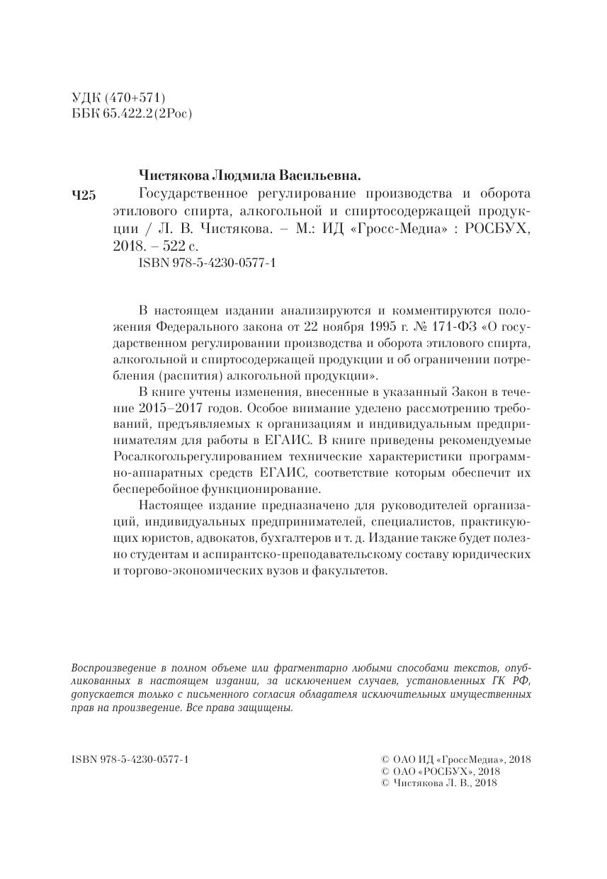 В книге учтены изменения, внесенные в указанный Закон в течение 2015–2017 годов. Особое внимание уделено рассмотрению требований, предъявляемых к организациям и индивидуальным предпринимателям для работы в ЕГАИС. В книге приведены рекомендуемые Росалкогольрегулированием технические характеристики программно-аппаратных средств ЕГАИС, соответствие которым обеспечит их бесперебойное функционирование.