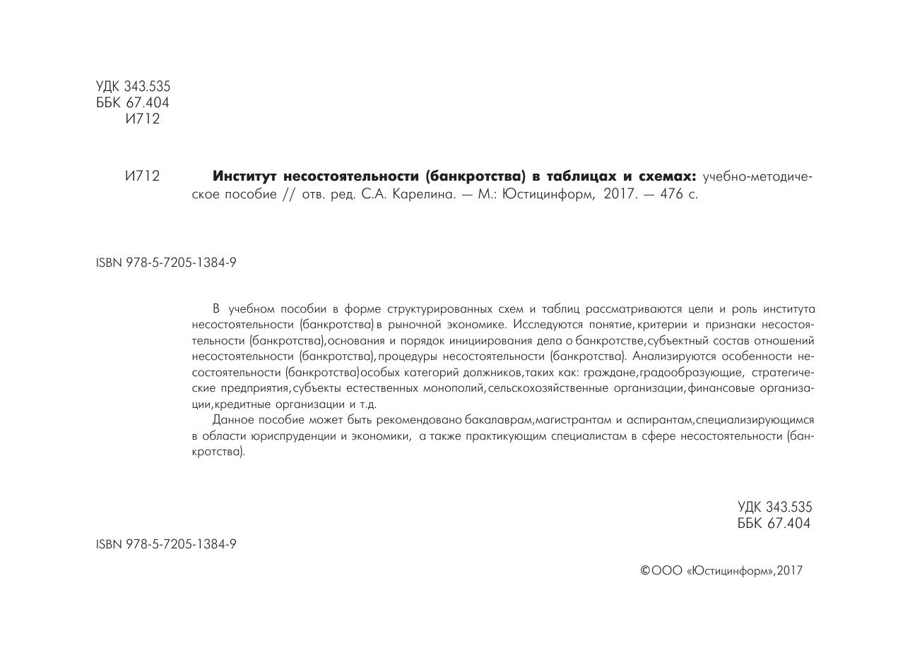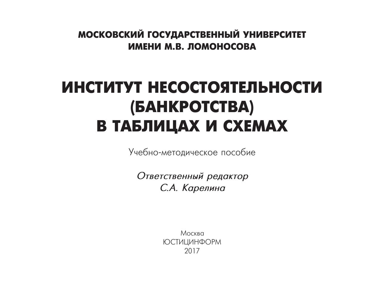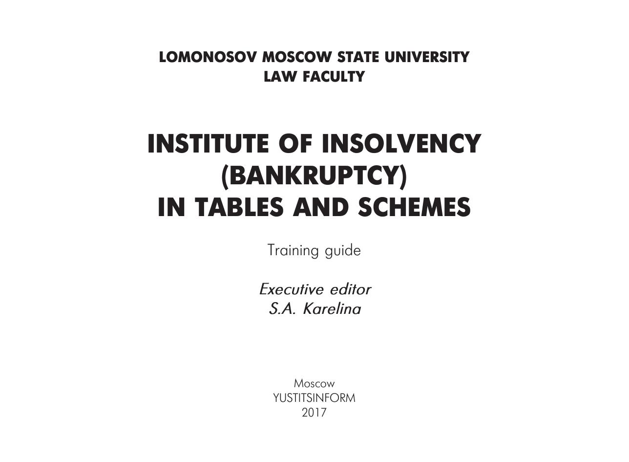 Данное пособие может быть рекомендовано бакалаврам, магистрантам и аспирантам, специализирующимся в области юриспруденции и экономики, а также практикующим специалистам в сфере несостоятельности (банкротства).