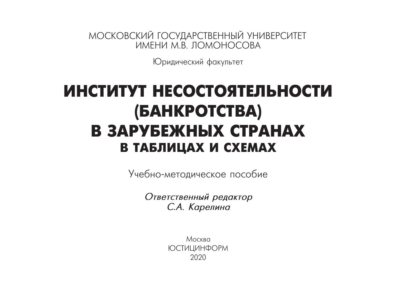 Институт несостоятельности (банкротства) в зарубежных странах в таблицах и схемах