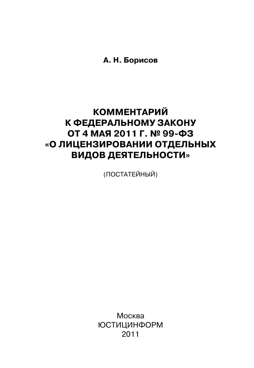 Комментарий к Федеральному закону от 4 мая 2011 г. № 99-ФЗ «О лицензировании отдельных видов деятельности» (постатейный)