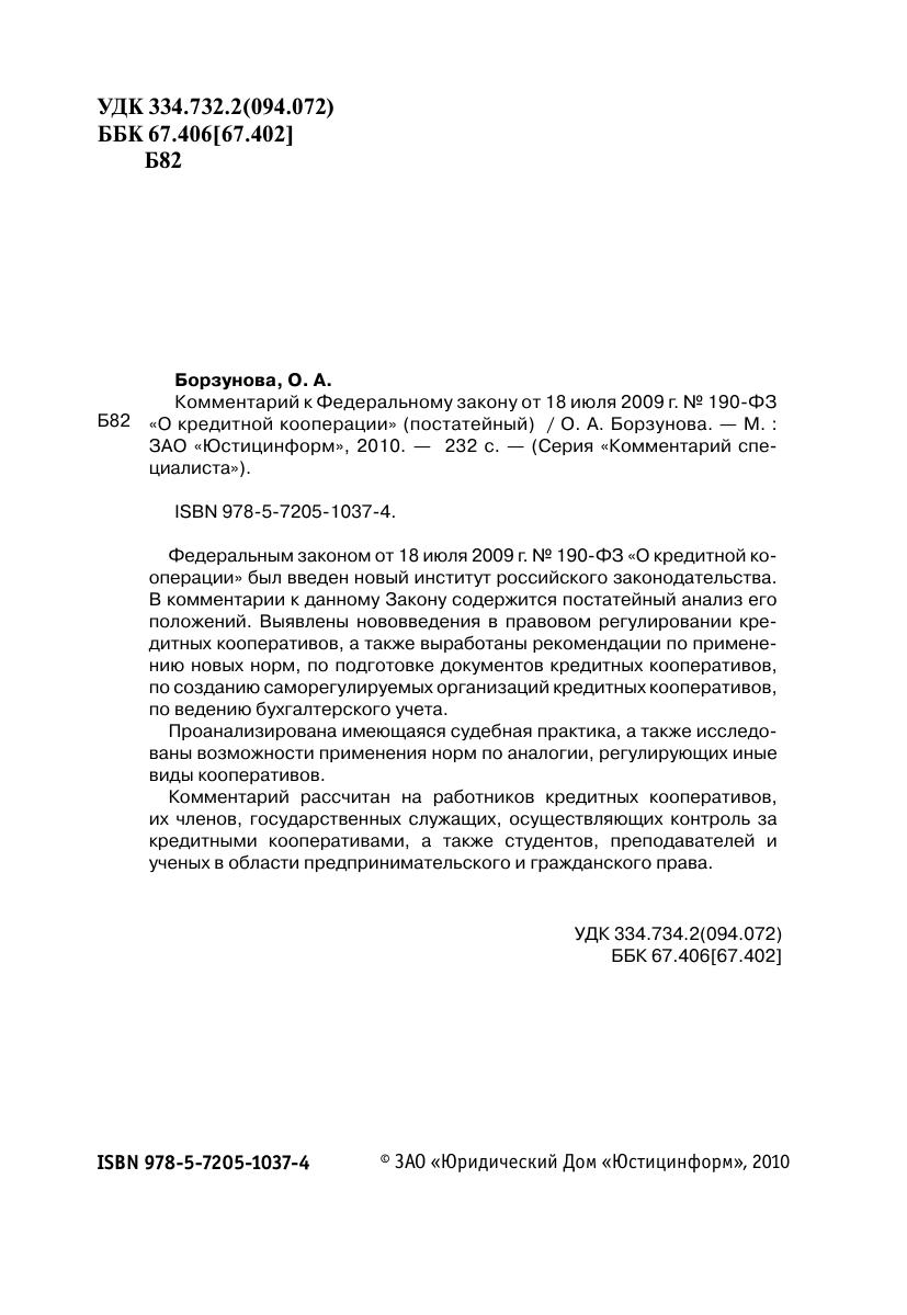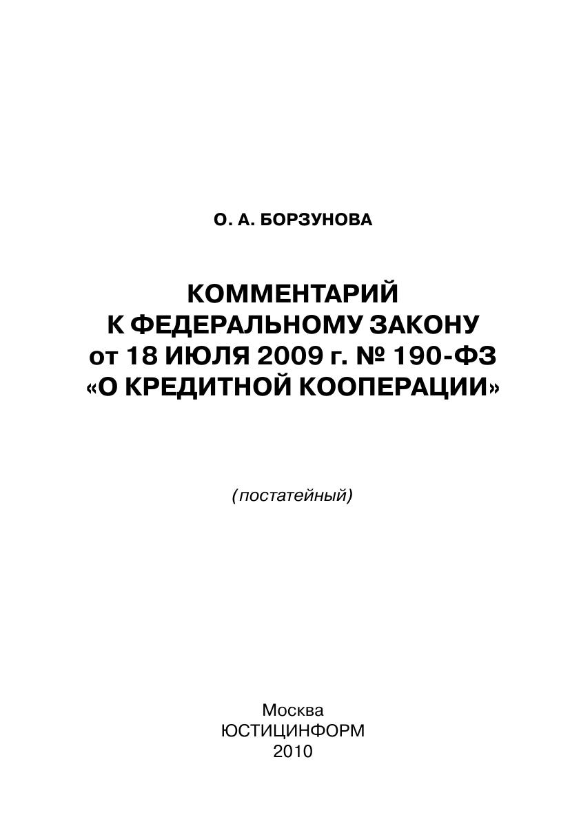 Комментарий к Федеральному закону от 18 июля 2009 г. № 190-ФЗ «О кредитной кооперации» (постатейный)