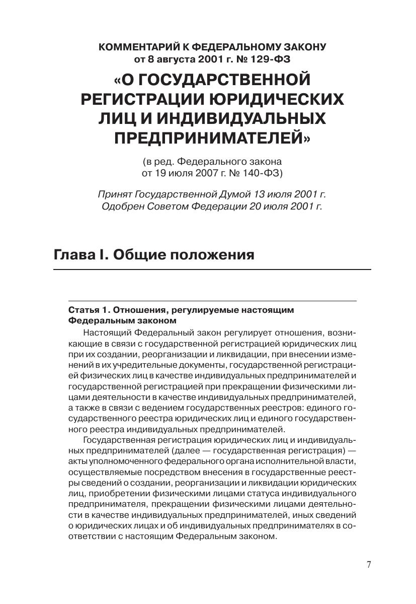 Комментарий к Федеральному закону «О государственной регистрации юридических лиц и индивидуальных предпринимателей» (постатейный)