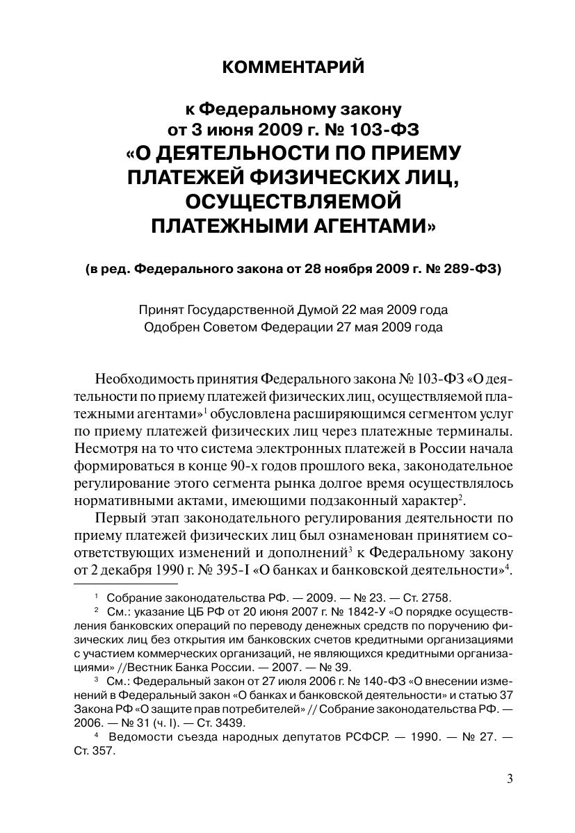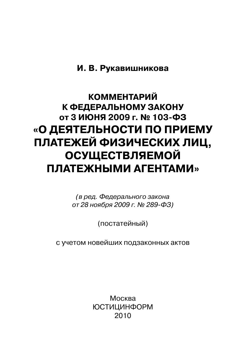 Комментарий к Федеральному закону от 3 июня 2009 г. № 103-ФЗ (в ред.Федерального закона от 28 ноября 2009 г. № 289-ФЗ) «О деятельности по приему платежей физических лиц, осуществляемой платежными агентами» (постатейный)