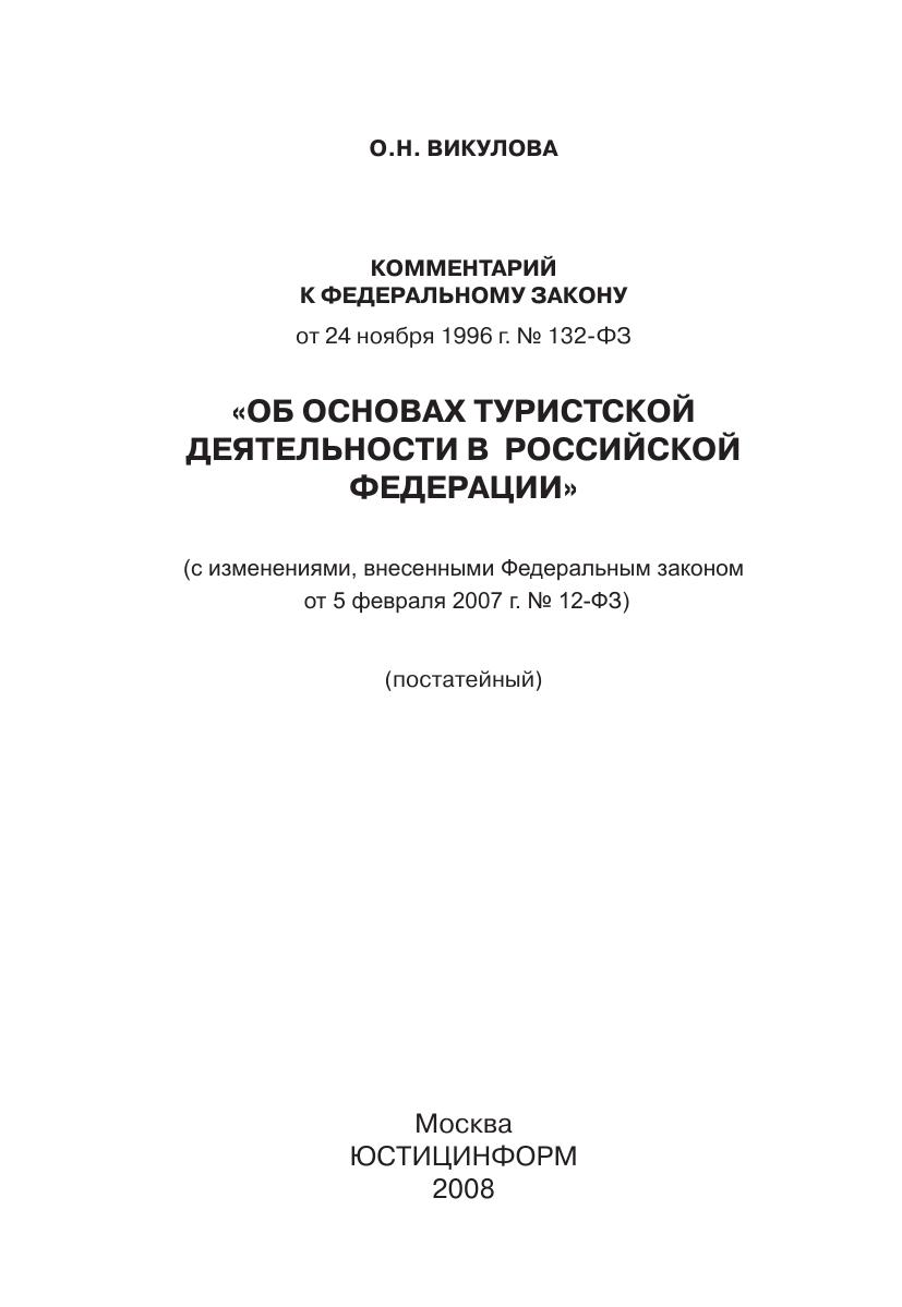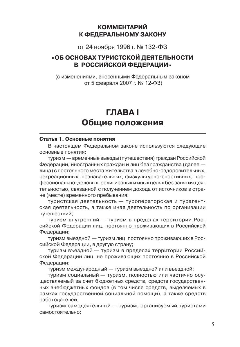 Комментарий к Федеральному закону «Об основах туристской деятельности в Российской Федерации» (постатейный)