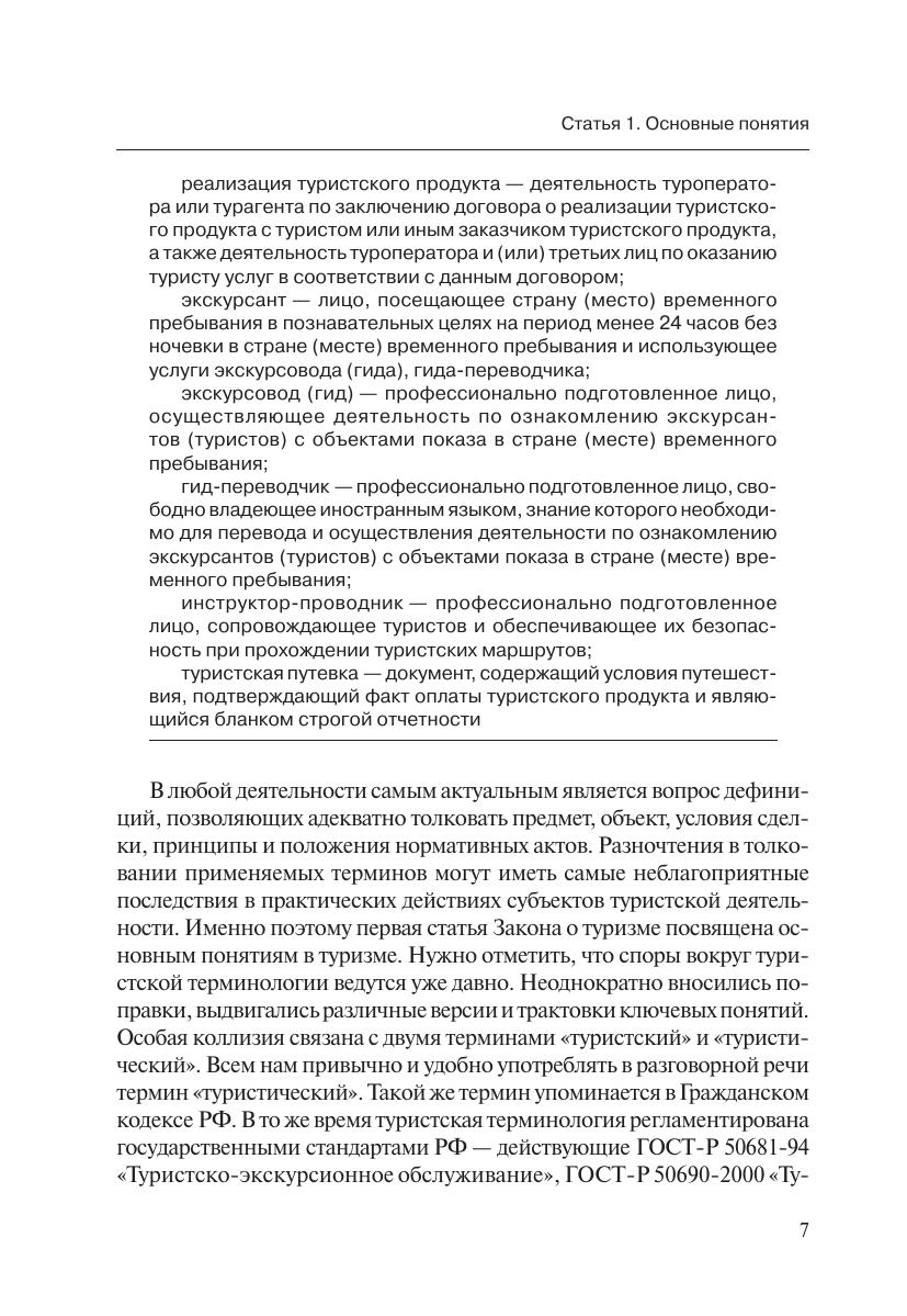 В работе представлен подробный комментарий к Федеральному закону от 24 ноября 1996 г. «Об основах туристской деятельности в РФ» с учетом последних изменений, вступивших в силу с 1 июня 2007 г. Изложены основы теории туризма, приведено толкование основных терминов и понятий, анализируются нормы гражданского законодательства, законодательства о защите прав потребителей, нормативные правовые акты, регулирующие деятельность субъектов туристской деятельности.Освещаются правовые аспекты международного туризма, основные организационно-правовые формы туристских организаций, договорные отношения между субъектами туристской индустрии, виды юридической ответственности. Отдельно рассмотрено российское и международное законодательство и приведены сводные таблицы, отражающие авторскую классификацию нормативных правовых актов.