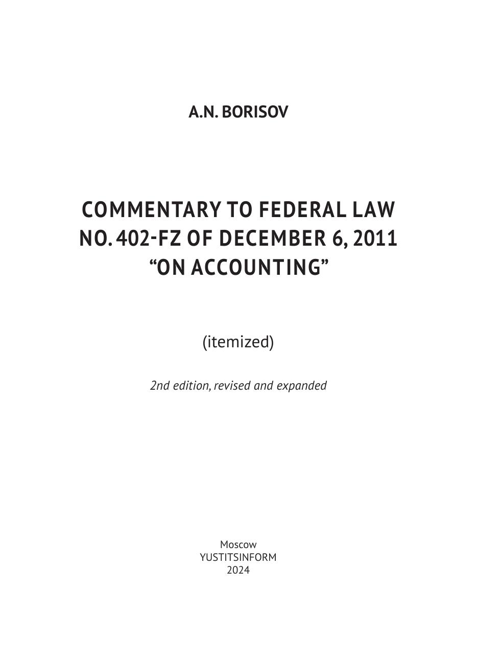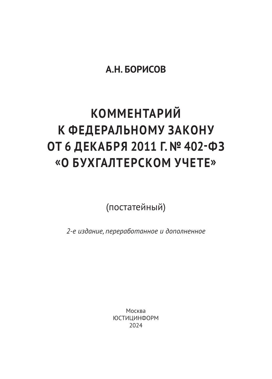 Комментарий к Федеральному закону от 6 декабря 2011 г. № 402-ФЗ «О бухгалтерском учете» (постатейный)