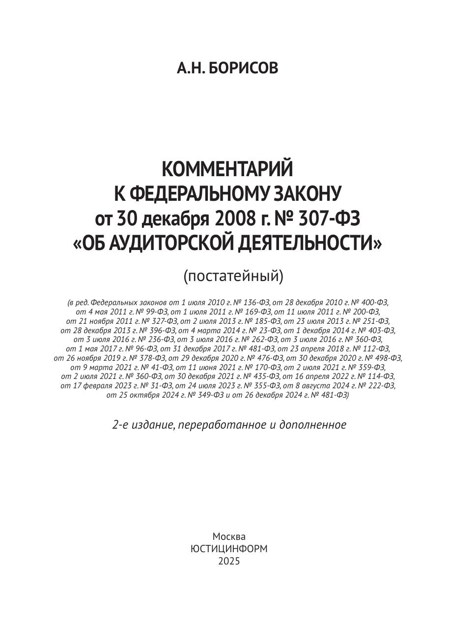 Комментарий к Федеральному закону от 30 декабря 2008 г. № 307-ФЗ «Об аудиторской деятельности» (постатейный)