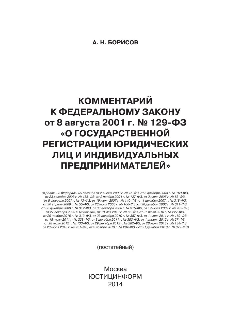 Комментарий к федеральному закону от 8 августа 2001 г. № 129-фЗ «о государственной регистрации юридических лиц и индивидуальных предпринимателей» (постатейный)