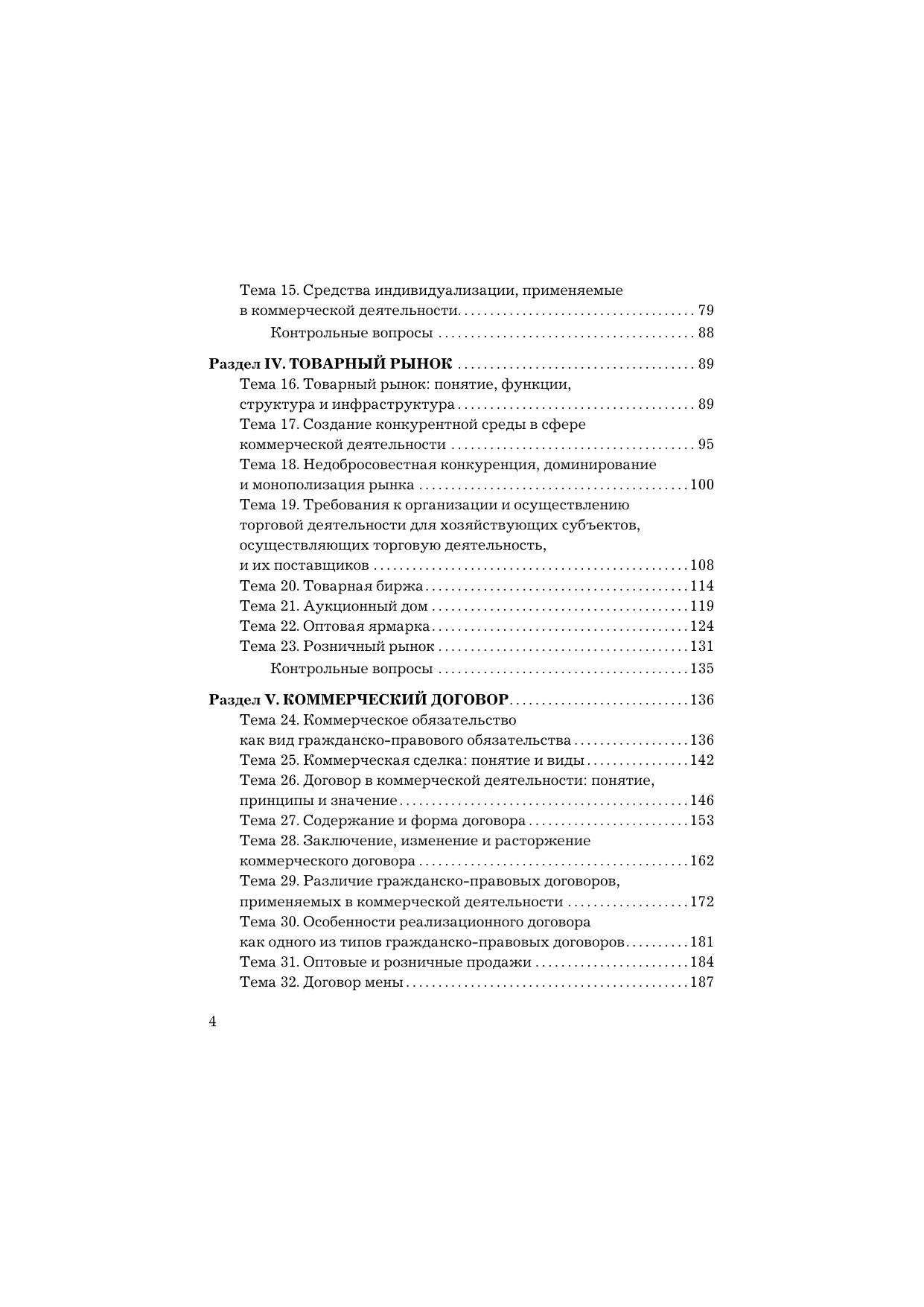 Пособие посвящено актуальным аспектам правового регулирования рыночных отношений на товарном рынке в Российской Федерации. Основное внимание уделено вопросам применения гражданско-правовых норм, институтов и правовых конструкций в обеспечении участников коммерческой деятельности. Важное место занимают примеры из практики.