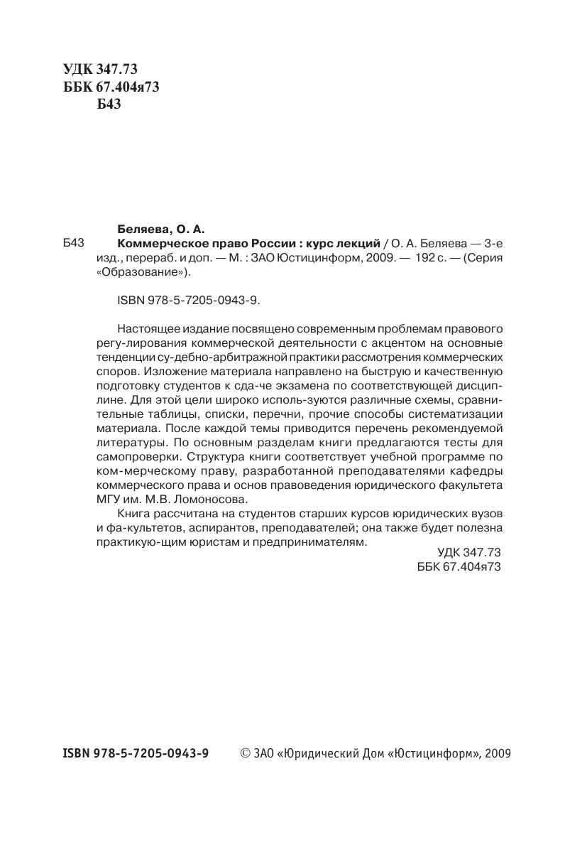Настоящее издание посвящено современным проблемам правового регулирования коммерческой деятельности с акцентом на основные тенденции судебно-арбитражной практики рассмотрения коммерческих споров. Изложение материала направлено на быструю и качественную подготовку студентов к сдаче экзамена по соответствующей дисциплине. Для этой цели широко исполь-зуются различные схемы, сравнительные таблицы, списки, перечни, прочие способы систематизации материала. После каждой темы приводится перечень рекомендуемой литературы. По основным разделам книги предлагаются тесты для самопроверки. Структура книги соответствует учебной программе по ком-мерческому праву, разработанной преподавателями кафедры коммерческого права и основ правоведения юридического факультета МГУ им. М.В. Ломоносова.Книга рассчитана на студентов старших курсов юридических вузов и факультетов, аспирантов, преподавателей она также будет полезна практикующим юристам и предпринимателям.