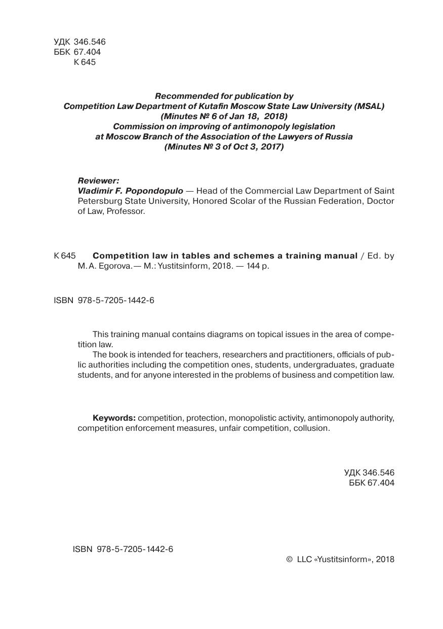 Книга предназначена для преподавателей, научных и практических работников, служащих органов государственной власти, в том числе антимонопольных, студентов, магистрантов, аспирантов, а также для всех, кто интересуется проблемами предпринимательского и конкурентного права.