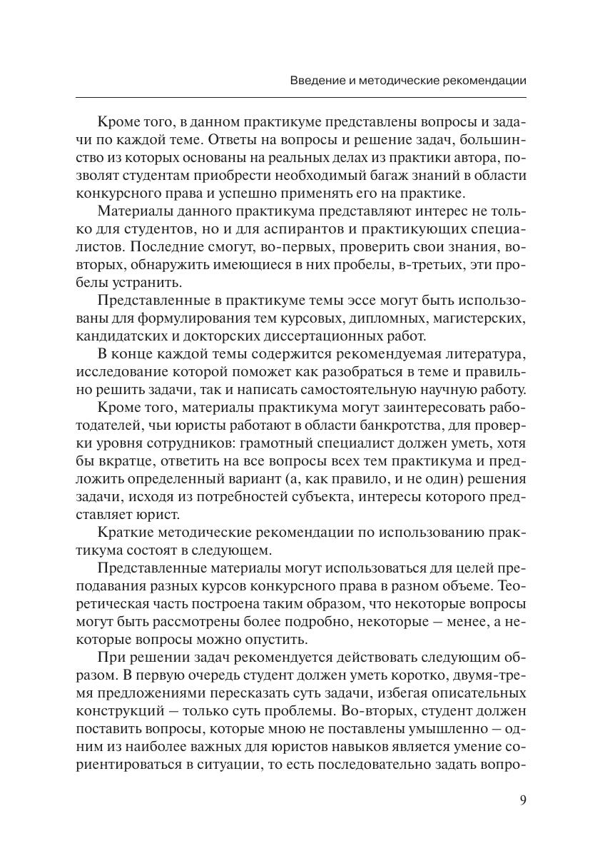 Особый интерес представленный материал вызовет у преподавателей, поскольку отдельные задачи можно использовать не только в рамках конкурсного права, но и в целях проведения занятий по гражданскому, предпринимательскому, коммерческому праву. Во введении даны рекомендации по построению занятий для разных категорий обучающихся.
