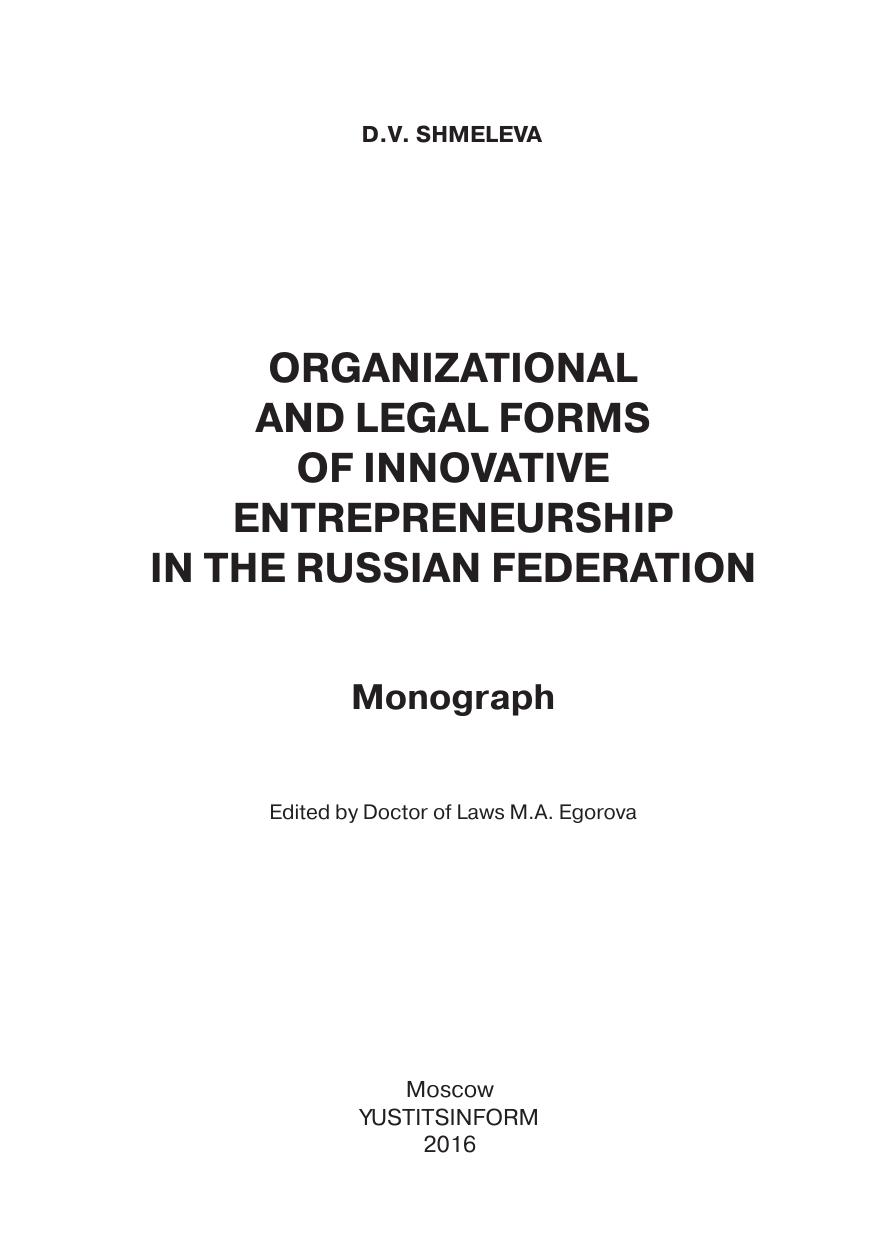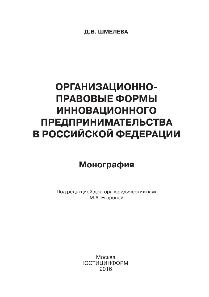 Организационно-правовые формы инновационного предпринимательства в Российской Федерации