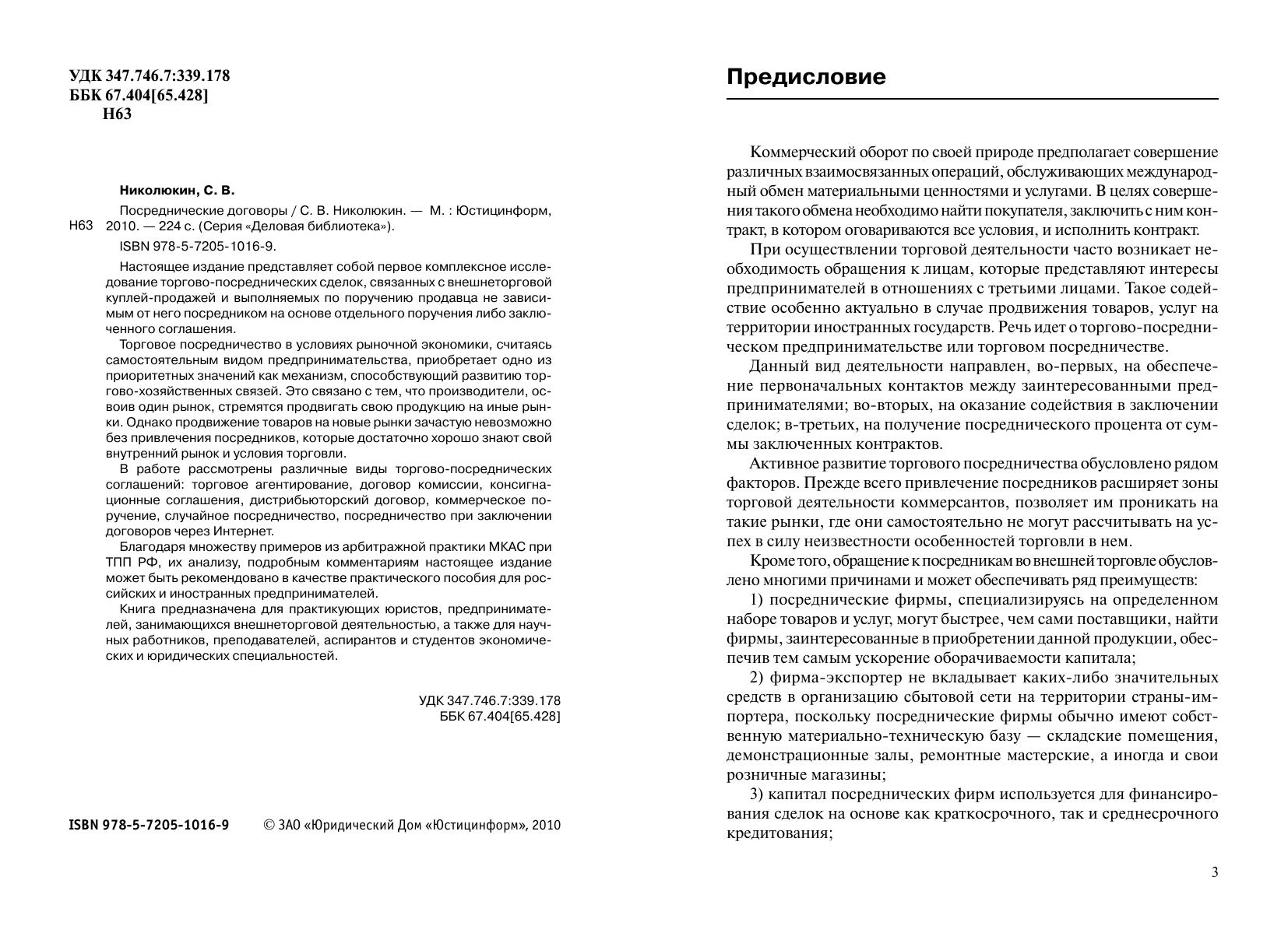 Настоящее издание представляет собой первое комплексное исследование торгово-посреднических сделок, связанных с внешнеторговой куплей-продажей и выполняемых по поручению продавца не зависимым от него посредником на основе отдельного поручения либо заключенного соглашения. Торговое посредничество в условиях рыночной экономики, считаясь самостоятельным видом предпринимательства, приобретает одно из приоритетных значений как механизм, способствующий развитию торгово-хозяйственных связей. Это связано с тем, что производители, освоив один рынок, стремятся продвигать свою продукцию на иные рынки. Однако продвижение товаров на новые рынки зачастую невозможно без привлечения посредников, которые достаточно хорошо знают свой внутренний рынок и условия торговли.В работе рассмотрены различные виды торгово-посреднических соглашений: торговое агентирование, договор комиссии, консигнационные соглашения, дистрибьюторский договор, коммерческое поручение, случайное посредничество, посредничество при заключении договоров через Интернет.Благодаря множеству примеров из арбитражной практики МКАС при ТПП РФ, их анализу, подробным комментариям настоящее издание может быть рекомендовано в качестве практического пособия для российских и иностранных предпринимателей.Книга предназначена для практикующих юристов, предпринимателей, занимающихся внешнеторговой деятельностью, а также для научных работников, преподавателей, спирантов и студентов экономических и юридических специальностей.