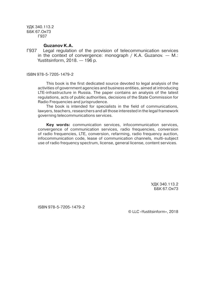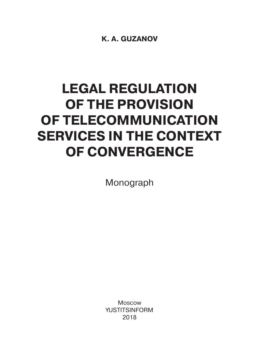 Книга рассчитана на специалистов в области связи, юристов, преподавателей, научных сотрудников, и всех тех, кто интересуется правовыми основами регулирования услуг связи.