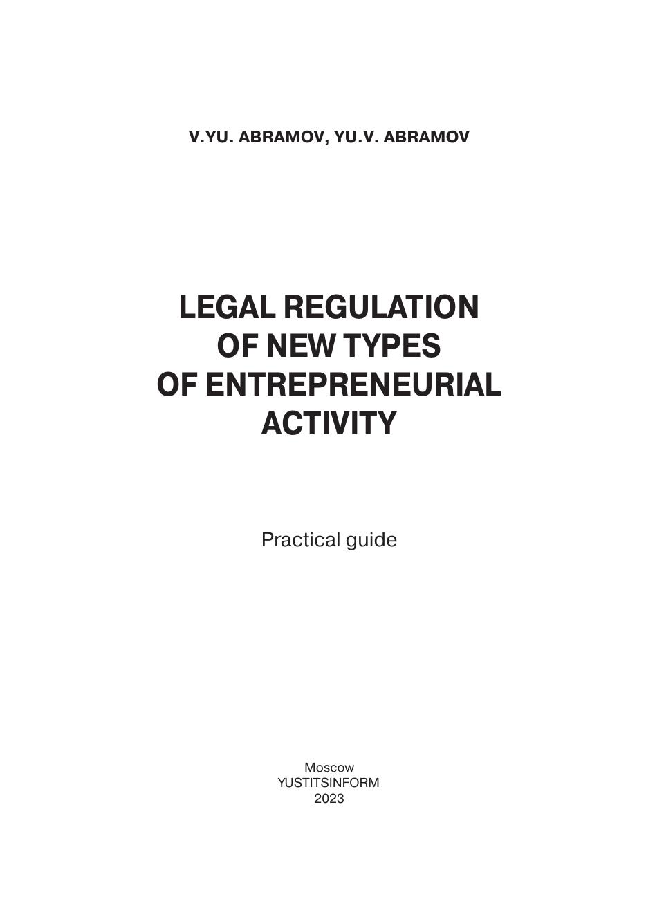 Правовое регулирование новых видов предпринимательской деятельности: практическое пособие
