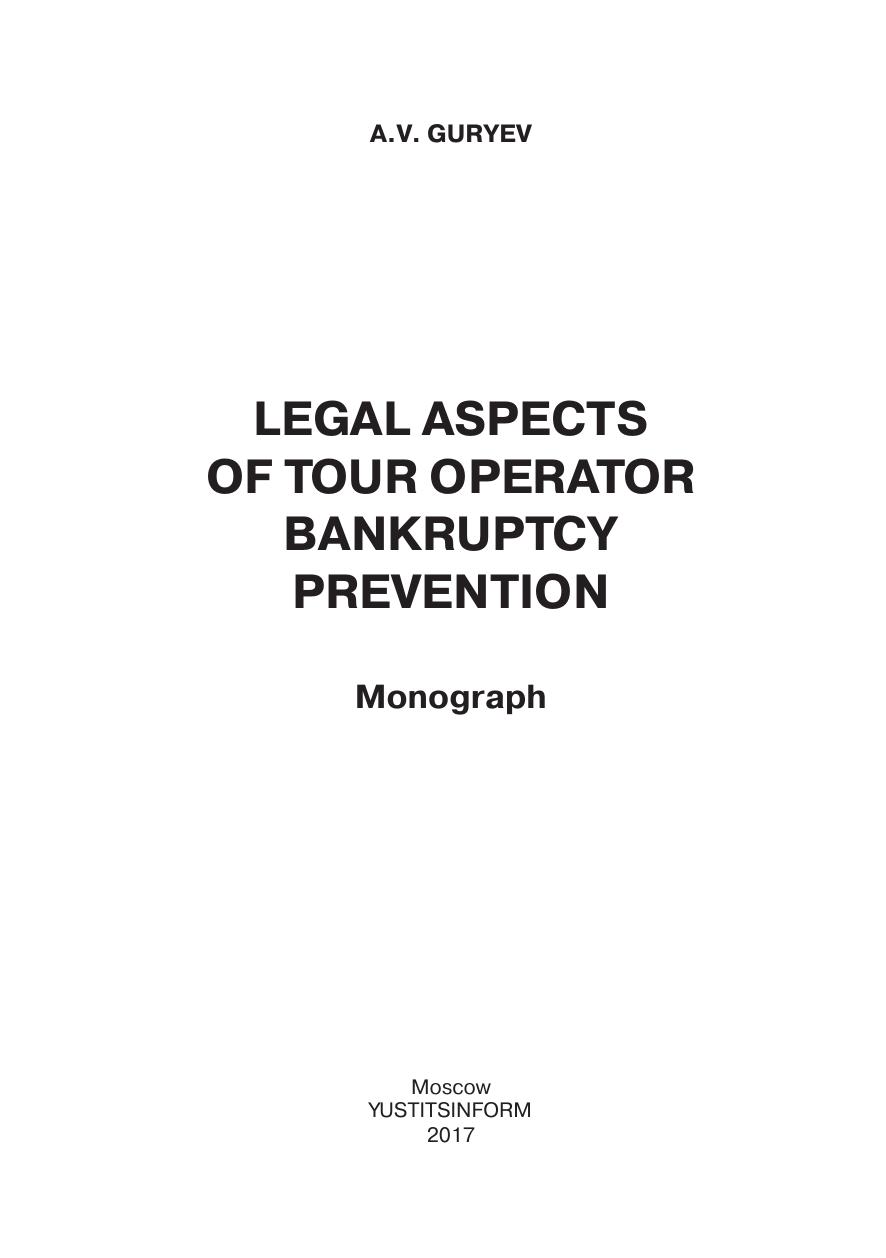 Правовые аспекты предупреждения банкротства туроператора: монография