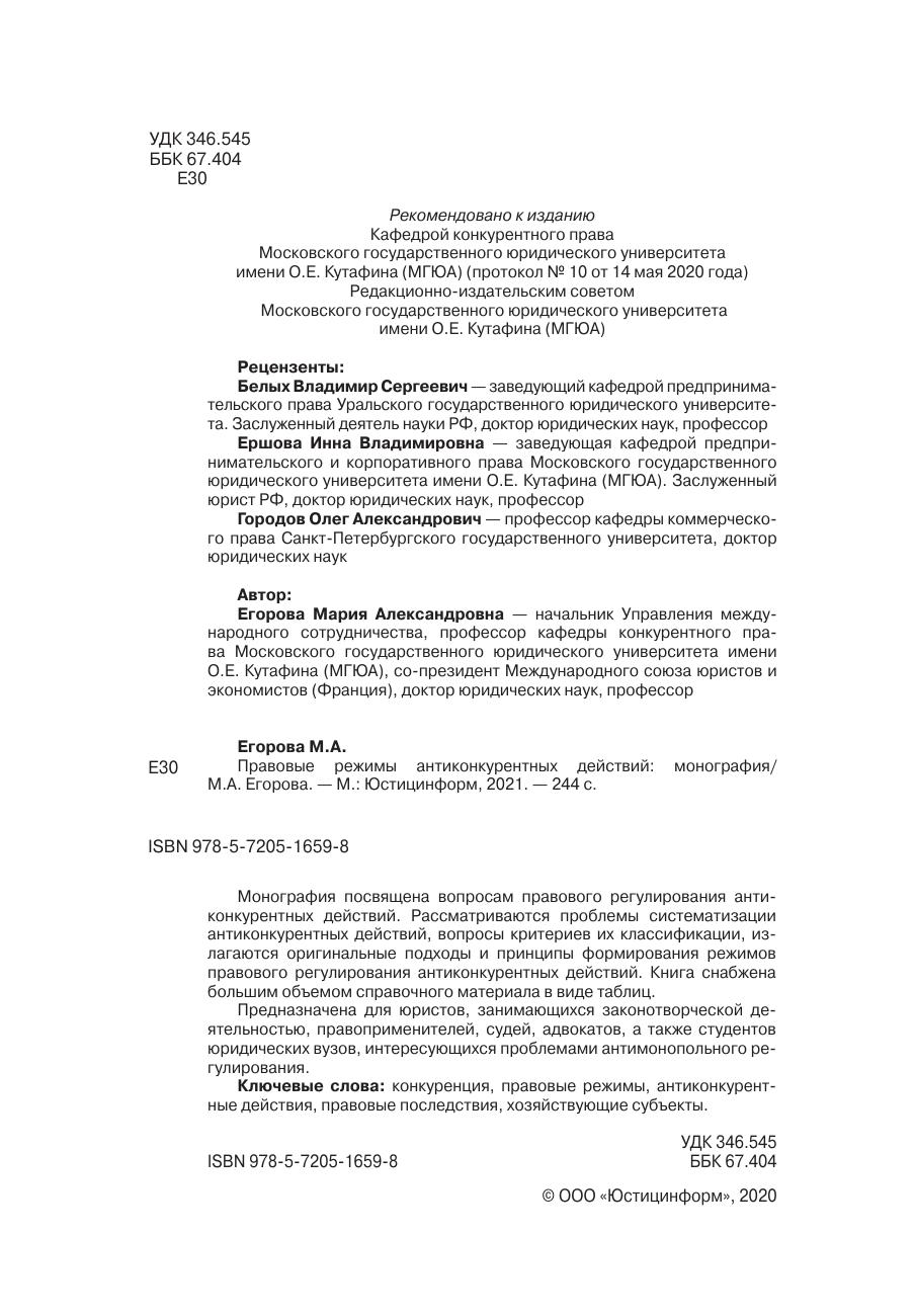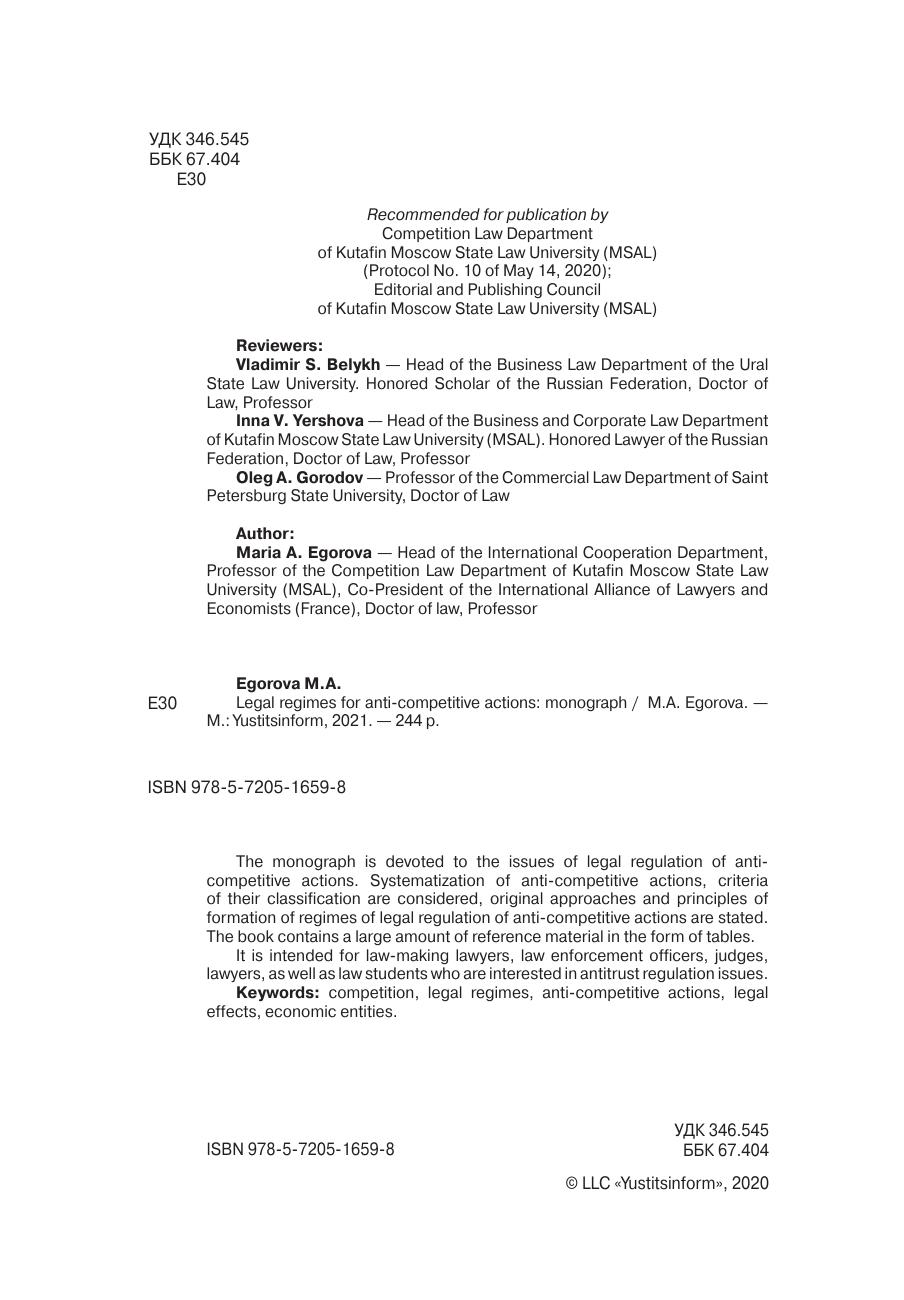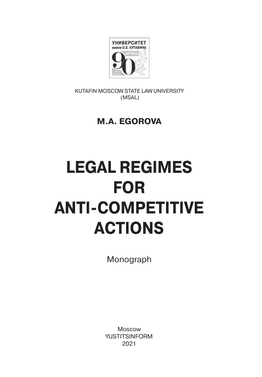 Монография посвящена вопросам правового регулирования антиконкурентных действий. Рассматриваются проблемы систематизации антиконкурентных действий, вопросы критериев их классификации, излагаются оригинальные подходы и принципы формирования режимов правового регулирования антиконкурентных действий. Книга снабжена большим объемом справочного материала в виде таблиц. Предназначена для юристов, занимающихся законотворческой деятельностью, правоприменителей, судей, адвокатов, а также студентов юридических вузов, интересующихся проблемами антимонопольного регулирования.